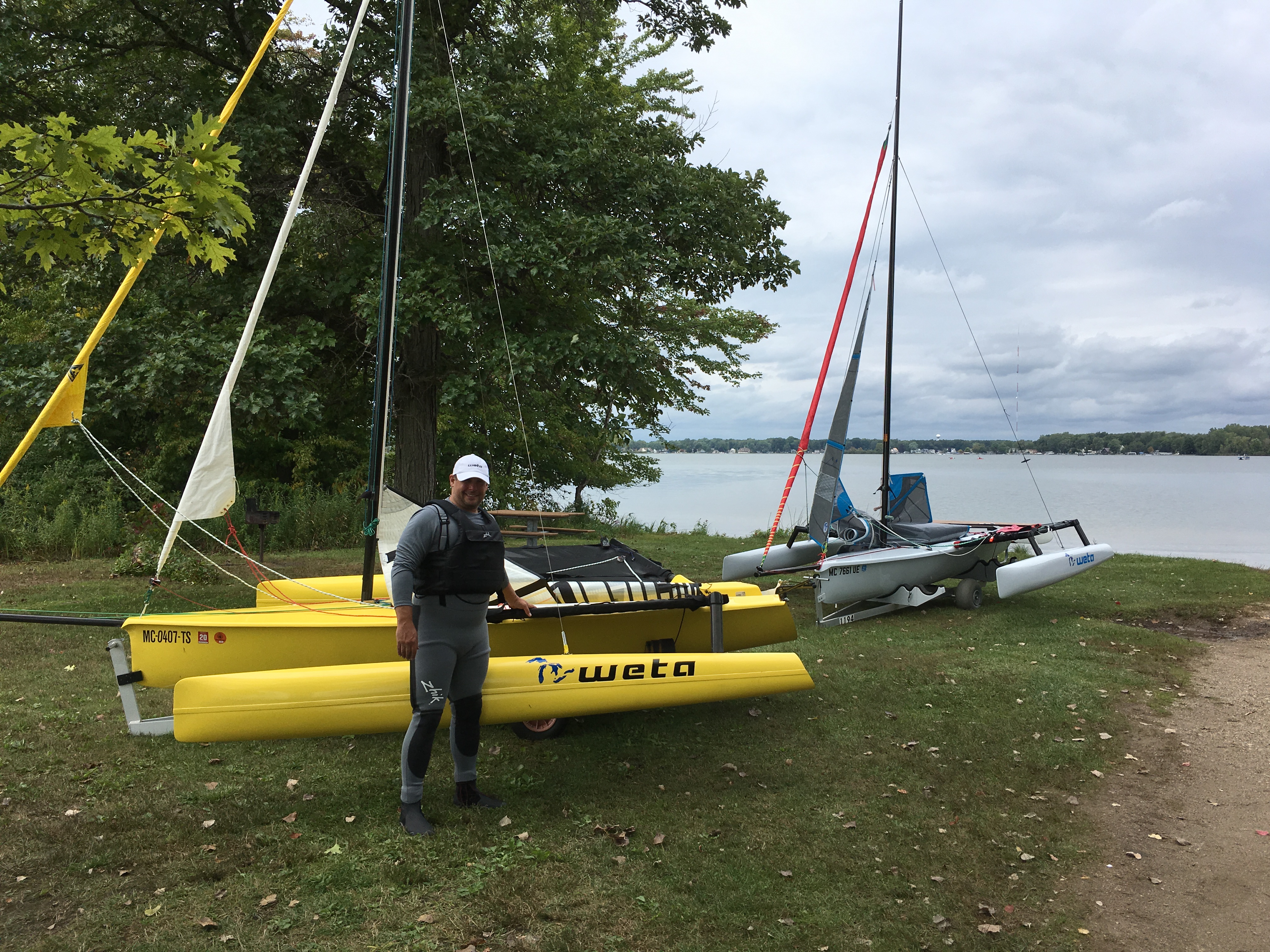 Tim started the journey early in life teaching himself to sail at the age of 11. From there he moved up thru a range of trailerable sailboats. From a Sunfish, to a Jet 14, to 16′ G-Cat catamaran. Learning to windsurf in high-school, then a Catalina 27 soon after college. The dream deferred for a while with the arrival of marriage and children. After many years of canoeing and kayaking when the kids were old enough, a return to sailing as the kids left for college. A Weta trimaran expanded the boating learning with an entry in sailboat racing in 2013.