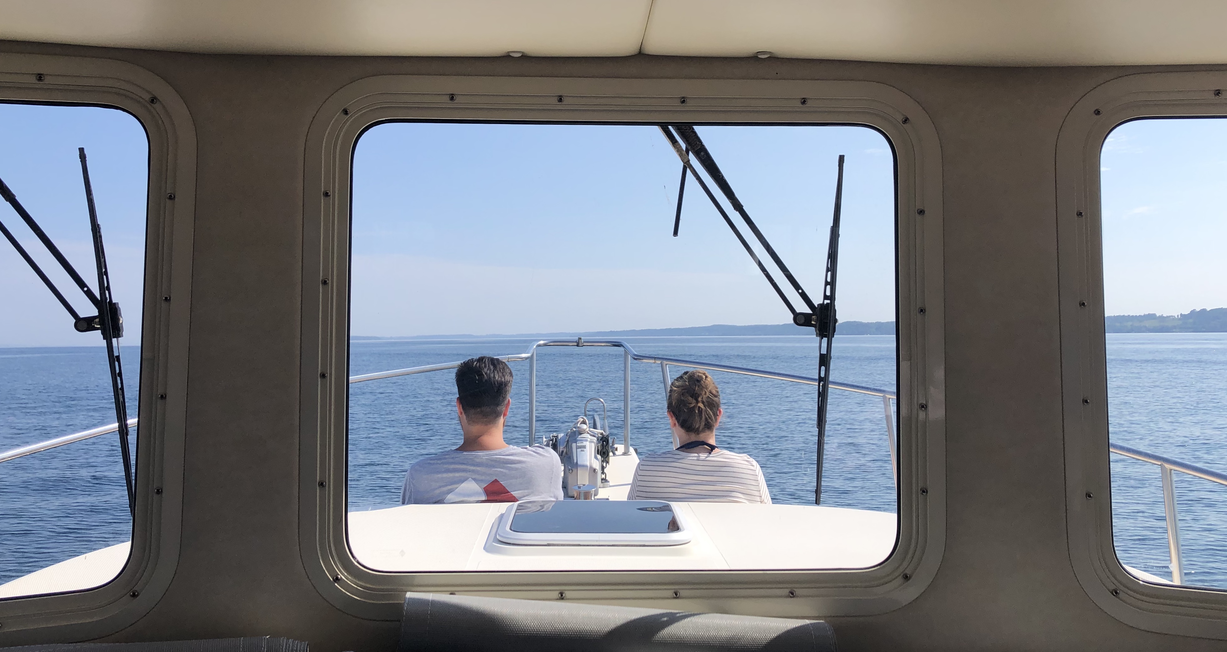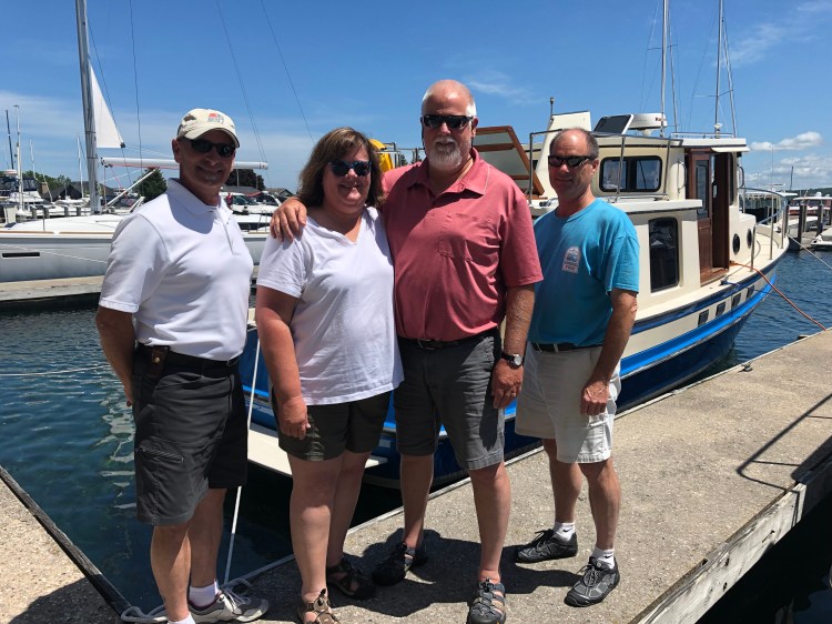 JULY 2019 – The journey began with a search for a capable boat, suitable for the year long trip. The search started with a slant towards a boat with a working / blue collar styling. The search for a trawler style boat led us to Trawlers Great Lakes (TGL) in Traverse City, MI, a Nordic Tug Dealer. One of the offering of TGL is Trawler School that provides not only book learning and hands on training but a chance live on a Nordic Tug 32 for the duration of the class. This allowed us to advance our knowledge of boating, our skills in boat handling and to gain a grasp of what we liked and disliked in a boat as a “home”.