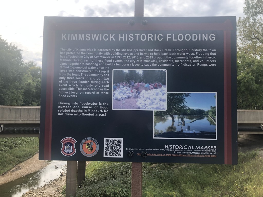 44 miles after we started the day we arrived at Hoppies in Kimmswick, MO. This place is a legacy in the Looper world. It isn’t much to speak of, but we were very glad to be able to tie up for the night. Hoppies is 2 floating barges and a fuel barge. So when a tow motor up/down the river, the barges and our boats all moved in unison with the waves and the floating barges all groaned in unison at the disturbance. It’s a wonder that these floating barges handle all the waves created by the passing tows.