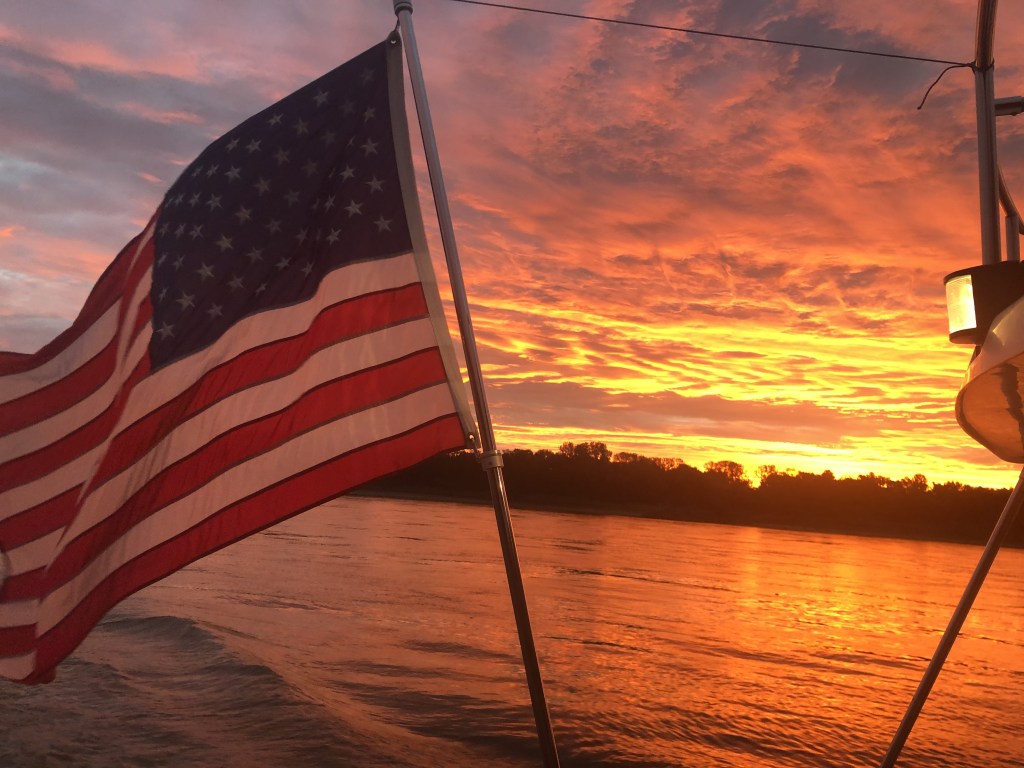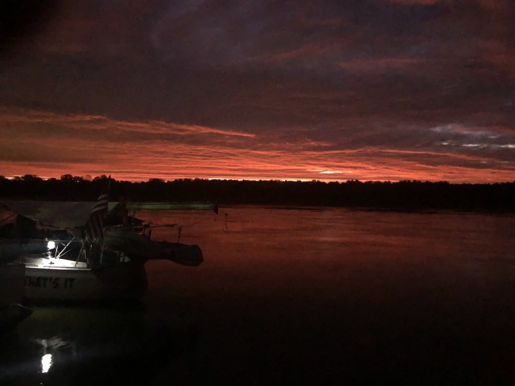 Friday was a long day of travel-about 10 hours at 11mph thanks to the current on the Mississippi. We finally arrived at our anchorage spot, Little Diversion Creek. Our first try to anchoring didn’t hold, so with the help of the other loopers we moved upstream and anchored for the night successfully (mostly). When the sun goes down and you are away from the city lights it is so DARK.