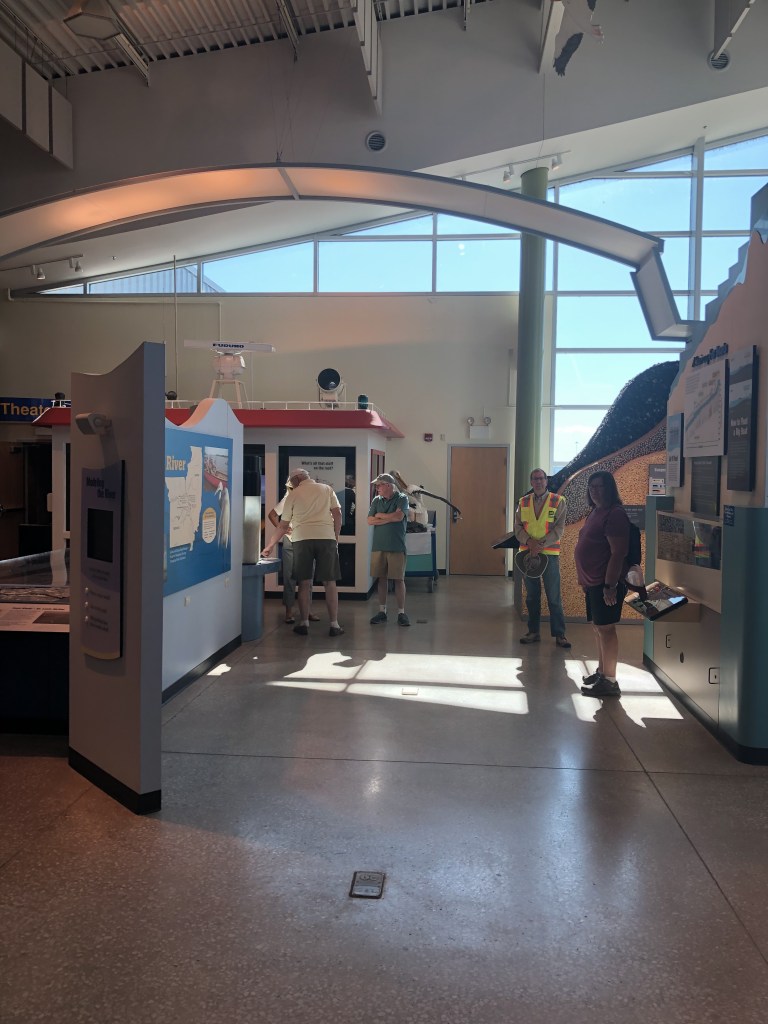 We have spent many hours in the pool with many other loopers who are passing through this area. It is interesting hearing each story as we share a common bond. Today Tim & I rode our bikes to Mel Price Lock & Dam in the heat. They have a free museum about the river and all that the the Core of Engineers do to maintain the channel depths for barge traffic. They also gave a tour of the actual dam and lock areas. That was interesting as we have gone through many locks already and plan to traverse this very lock tomorrow morning with 6 other looper boats.