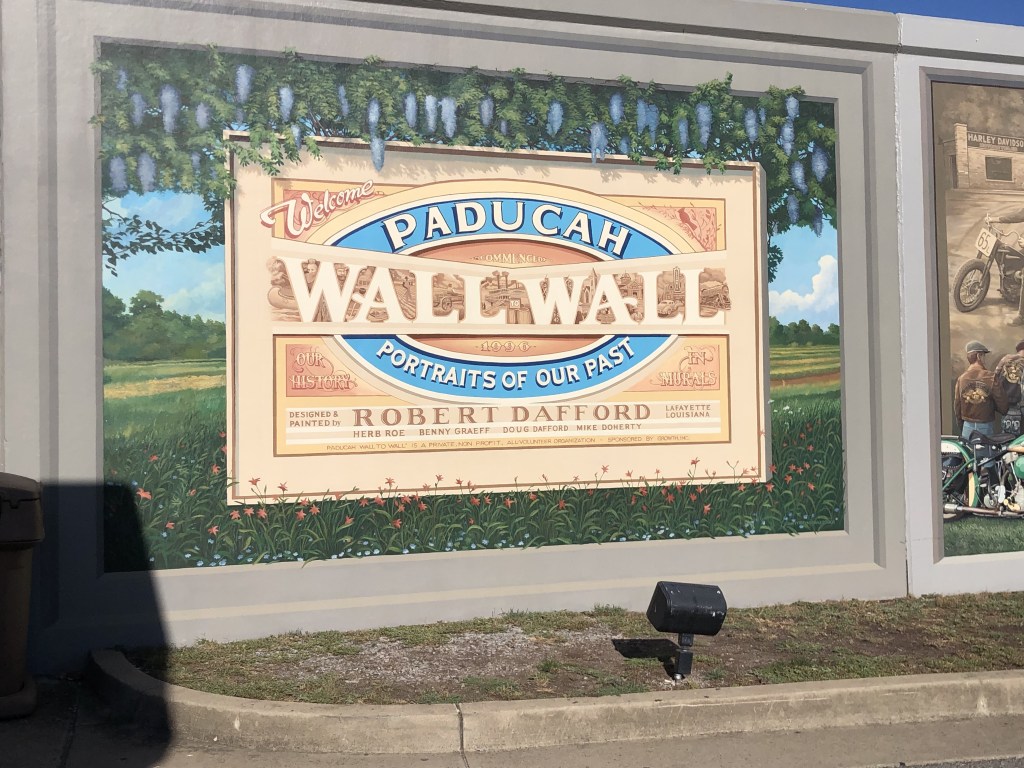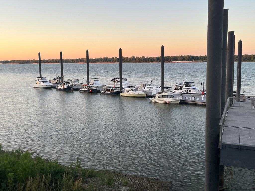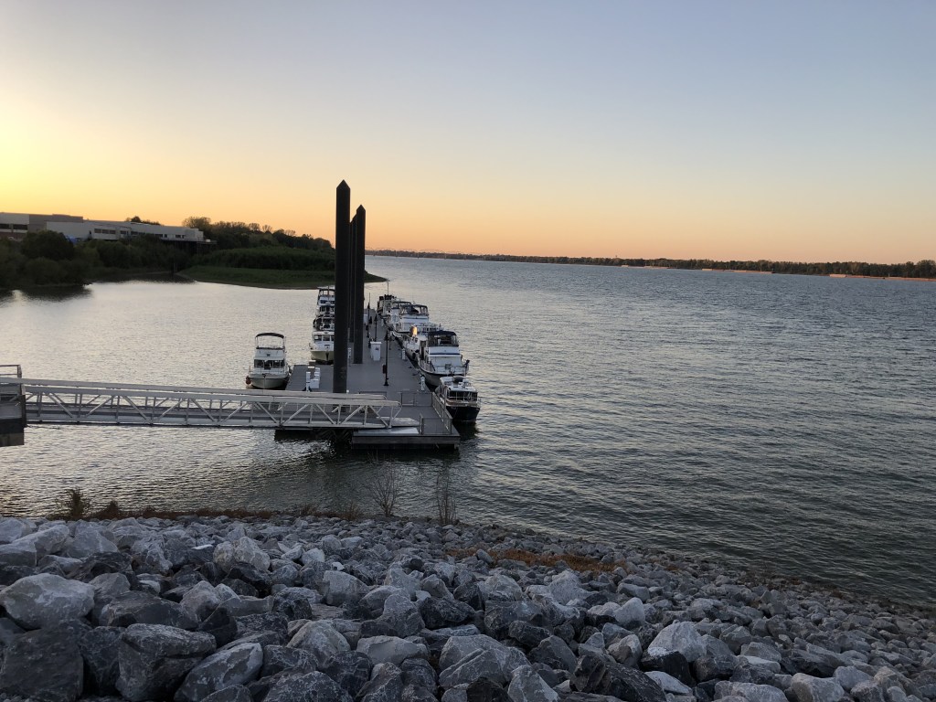 I was so looking forward to being able to tie up to a dock in Paducah after 2 anchorages. We were traveling with our merry band of tugs and friends (3 Ranger tugs, Lord Nelson Tug and our Nordic Tug). What a great group of people. Anyway, the 5 of us finally arrived at Paducah with the wind howling. The people already at the dock were helpful in assisting each of us as we approached the floating dock. Once docked our boat was really rocking in the wind so much so that staying on board made me sick. Thankfully the wind died down as evening approached. It was very windy both days we were in Paducah.