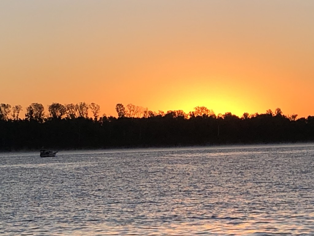 Friday we left for Nashville. It’s about 150 miles so we are taking it in 3 segments. As I write this we are anchored behind an island in the river. The wind is gently blowing and the temps are very comfortable. we will be soon serenaded by a trumpet player who plays every night at anchor and in the locks as the door closes. Someday we may figure out video. 😉