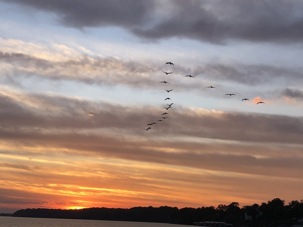 Wilson L&D, Joe Wheeler L&D–Two locks ahead of us today and there is a lot of commercial traffic. Contacted the lock master at Wilson L&D and he said if we are at the lock at 6:30AM he would put us through. Mind you, it is dark at that time of day in October. We were up at 5am, had breakfast, readied the boat for departure (mostly) and headed out of the marina. We had a little mishap just outside the marina channel, but were able to continue to the lock. I sat on the bow of the boat with a spotlight while Tim navigated the channel to the lock. It was very dark!! The dam was a welcome sight with all its lights and the lock was open for us. Wilson Lock lifted our boat up 93 feet. Joe Wheeler Lock & Dam was next (about 15 miles). Again we were fortunate to navigate thru the lock quickly and were lifted another 48 feet and continued on our way upstream on the Tennessee River.