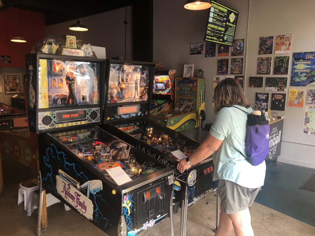 4th day: Tim rode his bike to see the International Towing Museum off the Riverwalk. Spent 2 hours in the Pinball Museum playing any and all the pinball machines. Walked over the pedestrian bridge (looks like the blue bridge in GR, but bigger), ice cream at Clumpies (a local favorite). We are back on the boat getting ready to head upstream towards Knoxville tomorrow.