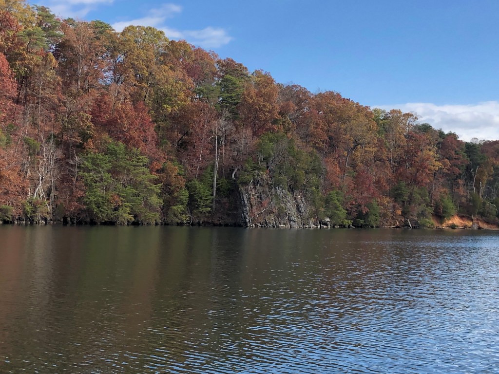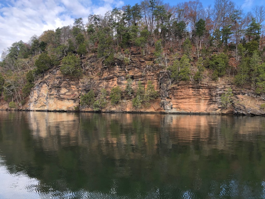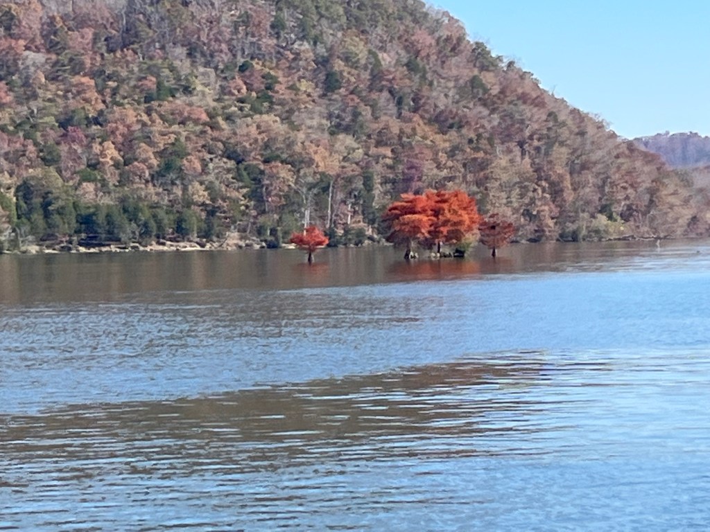 After 62 miles on the river and the Fort Loudon Lock (72ft lift) we arrived at Fort Loudon Marina. There’s a great restaurant called Calhouns (must try the Spinach Maria) right next to the marina which we really enjoyed. It still feels strange to be enjoying such warm weather in November–no complaining from me. It also seems strange that boats are left in the water all year round, but it’s different in the south.