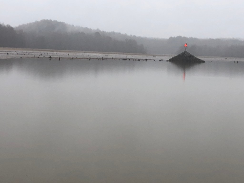 Demopolis (Lock) to Bobby’s Fish Camp – 98 miles and 1 Lock. Demopolis (40′)–Again fog was not our friend, but the fog lifted enough for us to leave around 7. Still lots of logs, sticks & plants on the river. This was a very long day of travel with our speed higher than normal and a good current in our favor so we could reach our destination. It was good to see the ever (in)famous Bobby’s Fish Camp after so many miles–remember we are only going 9mph but with the current an added 1-2mph. Bobby’s Fish Camp is one section of aluminum dock, twisted out of shape, and described as a marina with character. The restroom “facilities” at this “marina” consist of a Rubermade backyard storage shed with a shower, toilet and sink installed inside. Not much to speak of, but a place to tie-up to for the night, get a good nites sleep, and purchase fuel if you need it. Impromptu “docktales” were had before night descended on us.
