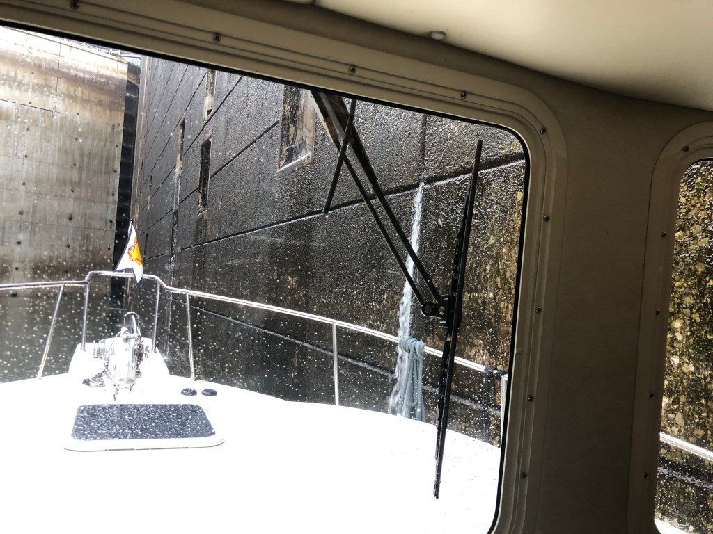 Keeping track of your “plan” when you don’t really have a schedule, and everything is dependent on the weather and the locks and the tows you can’t control, leads to keeping track of life on a whiteboard, or in our case a pilothouse window, with a dry erase marker.