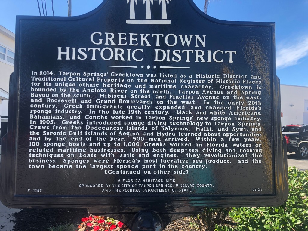 Tuesday we were up and ready to be tourists. We caught the local bus (looks like a trolley) north to Tarpon Springs. Tarpon Springs was settled by Greek immigrants who harvested the natural sponges in the area. Of course we had to buy a few to help the local economy. We visited a local Greek bakery and had an authentic Greek lunch. The food was very different than what we are used to, but we found most of it very good. We checked out the marinas and such and headed back to the bus stop.