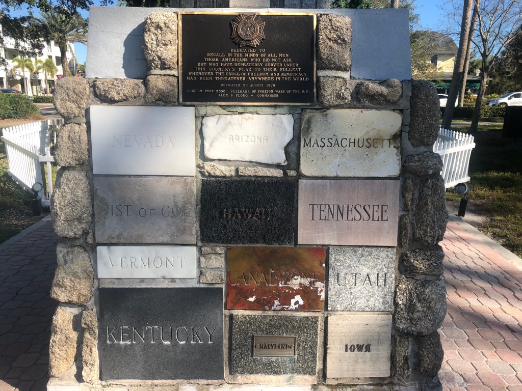 Our next stop was Dunedin. Lots of small tourist shops. We did find a small history museum of the area which was interesting. Lots of history on how the city grew because of the orange/grapefruit production, producing citrus concentrate for our military personnel during WWII, the freeze the wiped out the groves of citrus trees and other events that affected this area. Very fascinating.
