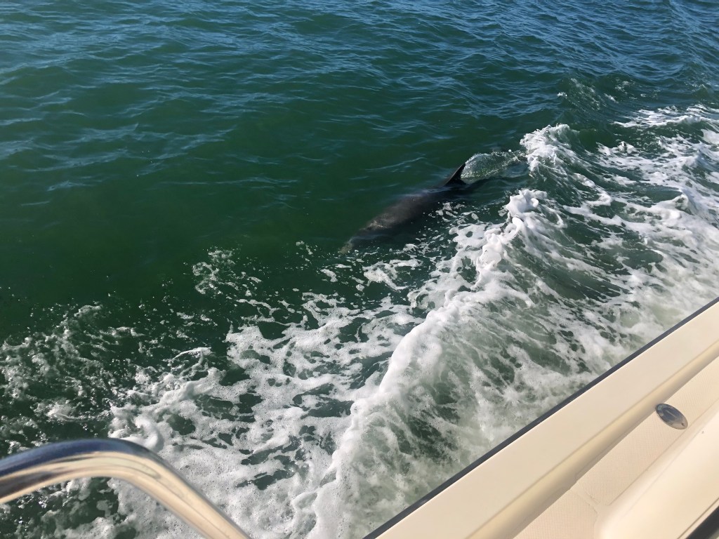 More Dolphins, these two swam along side for about 5 minutes. We have seen dolphins nearly every day we have moved the boat, since we entered Mobile Bay.