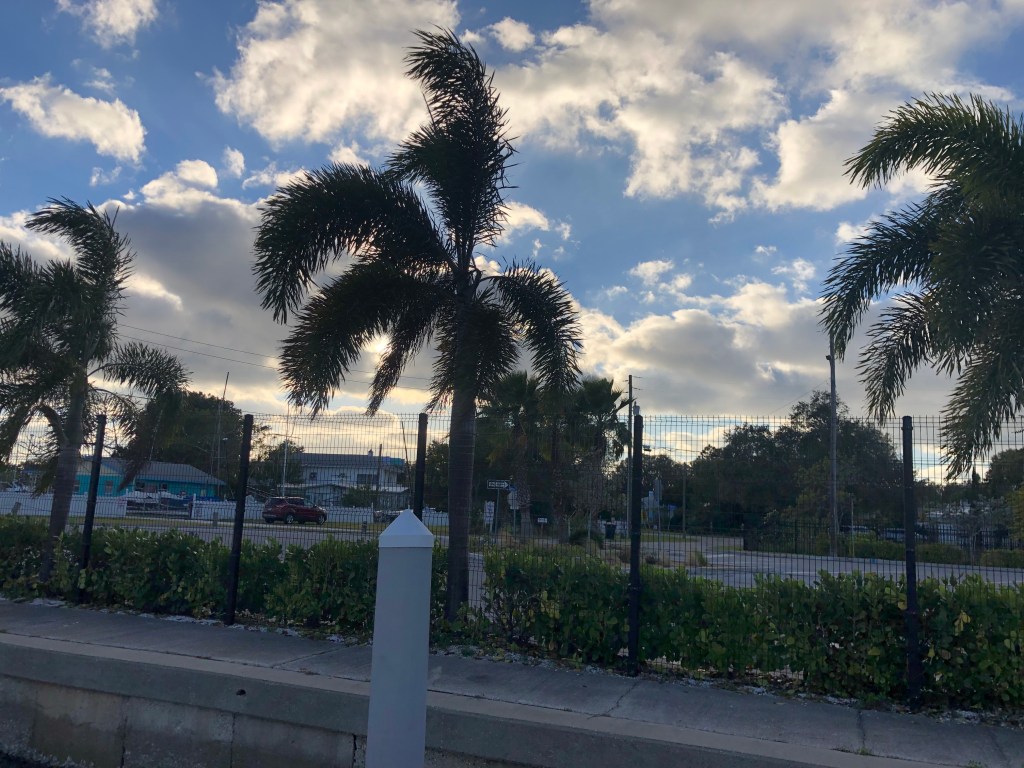 Clearwater–We were dead tired when we arrived at our marina in Clearwater, but first things first. Got the hose out and washed all the salt off the boat. Then time for a short nap. We really didn’t feel like doing anything touristy but did eat at the local Frenchy’s restaurant. FYI: During our walk the next day we noticed that this particular restaurant was encased in plastic with the word POISON pasted all over the covering. Gave us pause to wonder what we may have ingested at our meal.