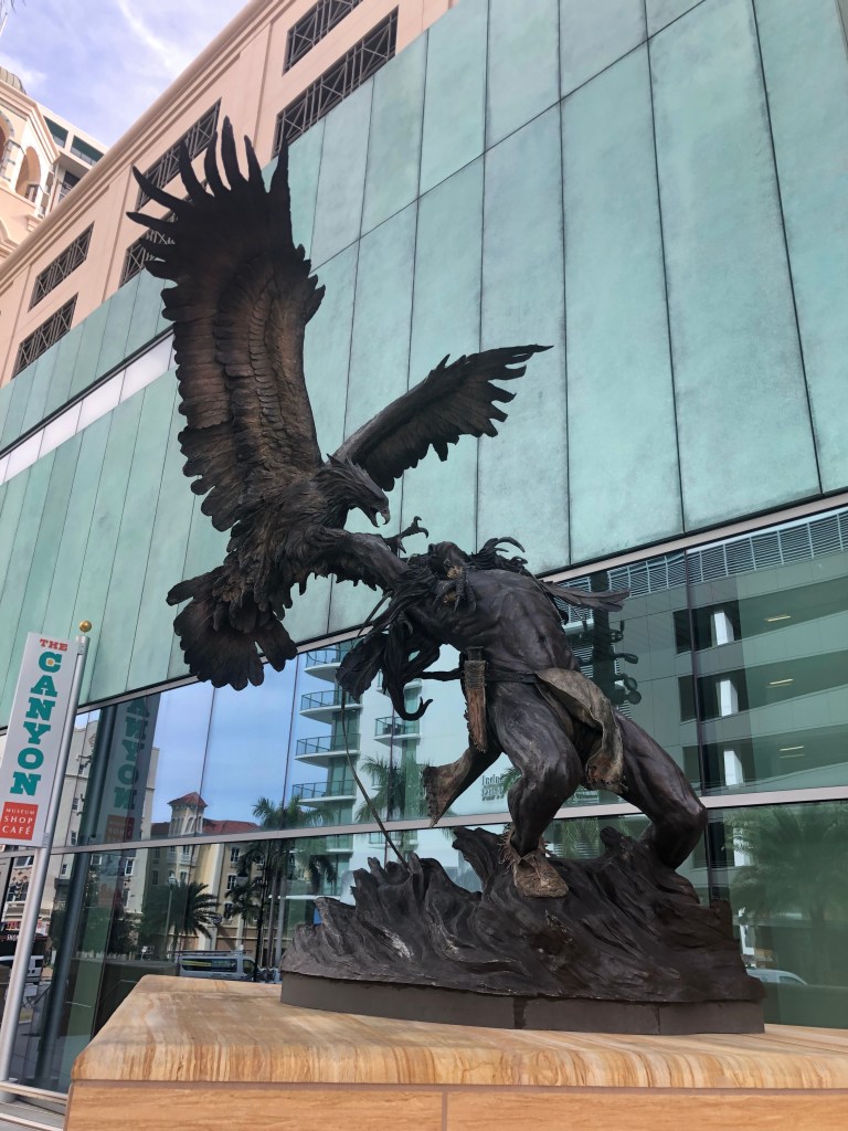 It’s been wonderful to have a vehicle (a very nice one at that). Monday-Wednesday activities: Our first stop was, of course, West Marine and the hardware store for on-going boat projects. Next the Publix for provisioning (still miss Meijer), then Mazzaro’s Italian Market. We visited Weedon Island Preserve (walked many miles on the boardwalks thru the mangrove trees). Hiked at Maximo Park and ate at the Tiki Bar at the Maximo Marina. Visited downtown St. Pete–free trolley car ride for lay of the land, enjoyed a walk out to St. Pete Pier, shopping, ate lunch sitting outside in the sun (Michigan weather is in the low 30’s), toured the James Museum of Western & Wildlife Art (I need to crash course in art appreciation). Drove thru an area of houses similar to the houses in East Grand Rapids. Downtown St. Petersburg didn’t seem to be congested like many other larger cities, but that may have been due to the time of day that we visited.