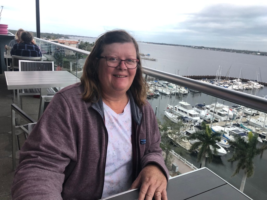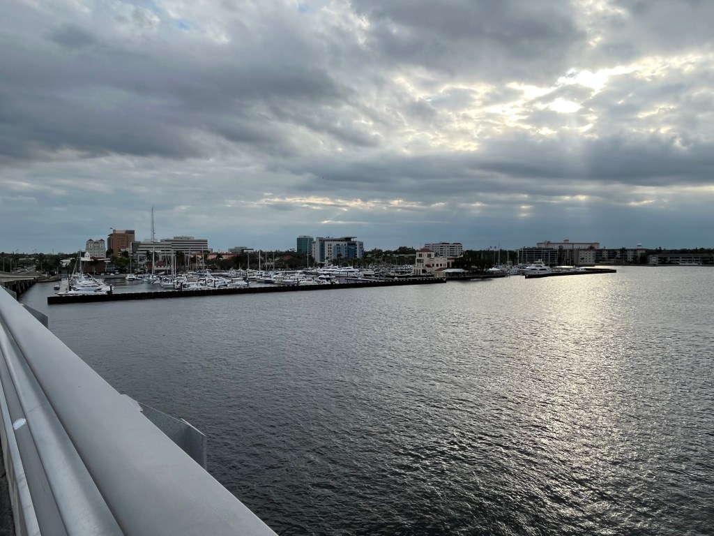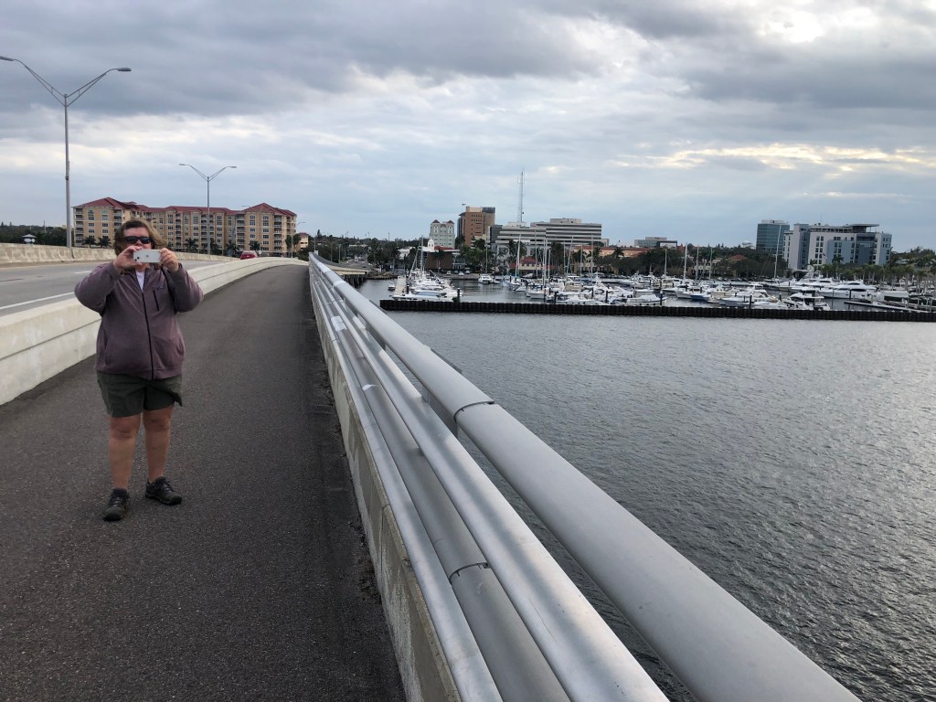 Friday – More waves cross Tampa Bay to Bradenton–Oh the waves on Tampa Bay!!! The bay sure feels huge when the waves are big. The wind subsided temporarily after we passed under the Sunshine Bridge. We were successful in reaching Twin Dolphin Marina in Bradenton that afternoon. There was a pool, but the cool temps. in Florida didn’t encourage anyone to take a dip. Bradenton had a long river walk which we walked as well as biked. We walked the downtown–nothing newsworthy. The farmers market on Saturday was fun. Tim enjoyed, in his opinion, the best ribs ever from a vendor at the market. Saturday night I was in the mood for pizza at Oak & Stone. Little did we know that this pizza joint has a 1st floor area as well as the 8th floor which overlooks the marina and river. We were seated on the 8th floor area next to the railing. What a beautiful place to eat and enjoy the view. Too bad we are leaving tomorrow. Also we were able to bless a young family to a free dinner on us. So fun to act on promptings from the Holy Spirit. The only negative from this marina was we were told that they had a rat problem (brings back visions from the Big House in Brazil….). Fortunately we didn’t acquire any unwelcome critters during our stay there.
