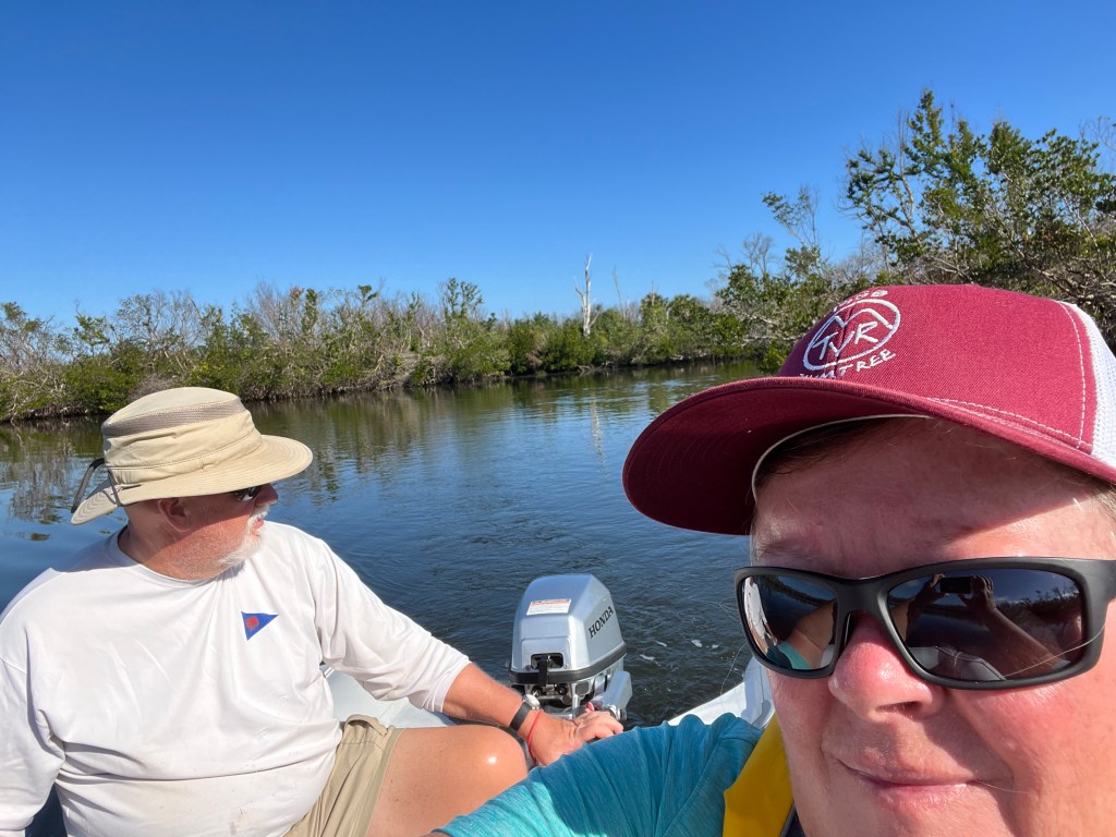 Wednesday – Move to Pelican Bay Anchorage–Pelican Bay is the same place we anchored while on the “Taste of the Loop” with Scott/Karen DeVoll. We weren’t sure what to expect because of Hurricane Ian, but we had seen lots of other boats anchored in this bay on Nebo. We anchored without any issues and had about 25 other boats anchoring around us. I do have an issue at night when we anchor because the anchor chain makes noises and keeps me awake. Again, anchoring is really uncomfortable for me as I prefer being in a marina tied to something solid.