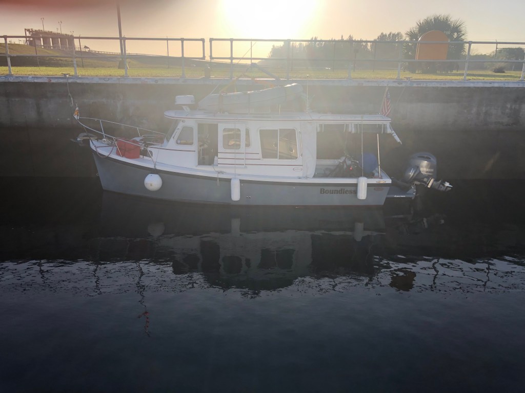 Feeling like we had arrived, we still had a ways to go to our destination. We tied up (no water or electric) at Indiantown Marine Center for the night. I don’t know if it was the excitement of the baby or what, but I had an unexpected episode with falling into the open lazaret and Tim might have broken a toe on a cleat. Expect the unexpected….. We were the only boat tied up in the area, but the night was quiet.