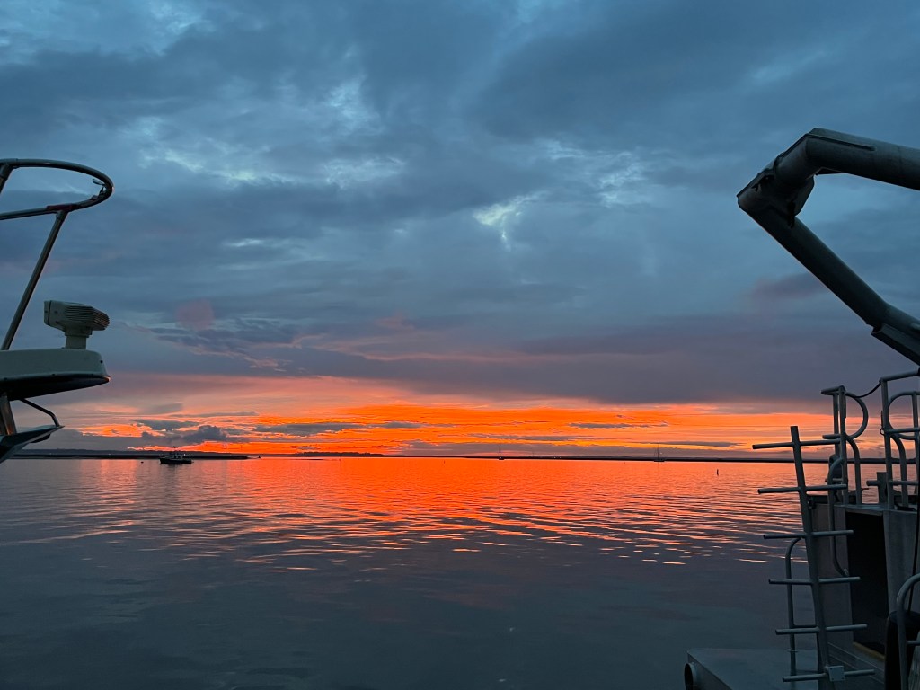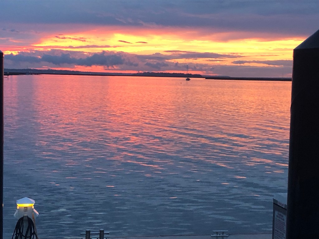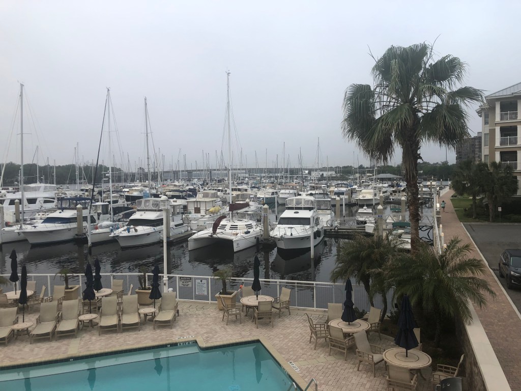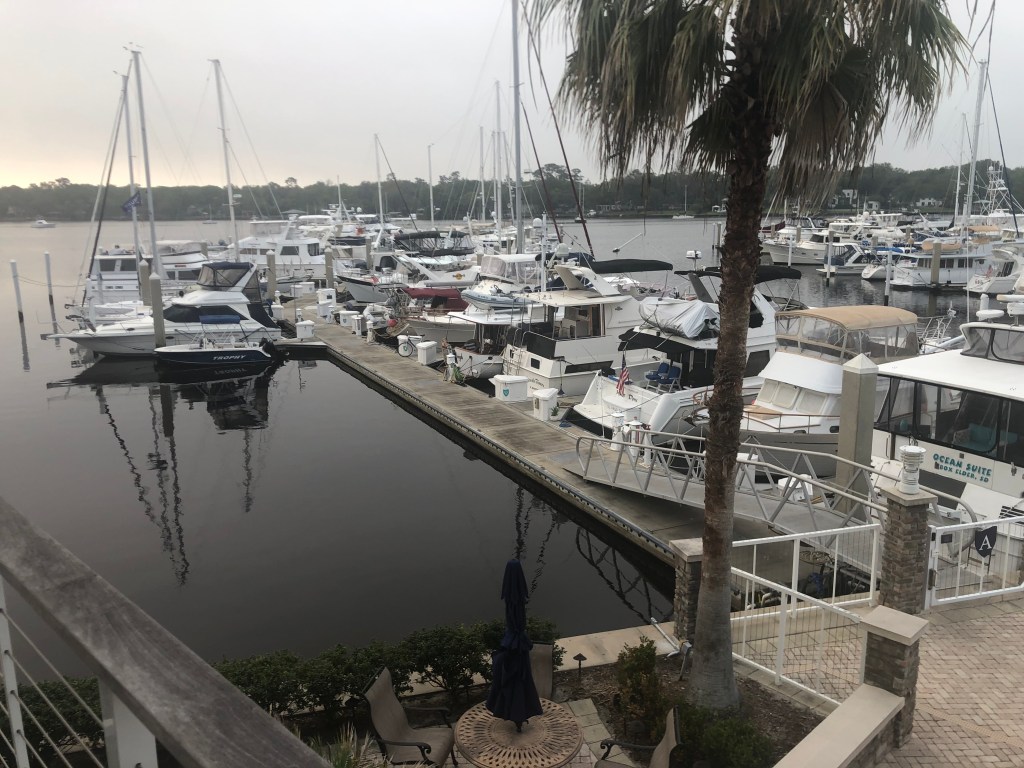 We arrived in Fernandina Harbor Marina without incident (like a grounding). We were fortunate to arrive when we did because a thunderstorm moved thru the area about an hour after we tied up to the floating dock. It was interesting to be in a thunderstorm on the boat and watch the storm move across the water. I am thankful we are safe and dry in our boat and that there are many sailboats around us in case of a lightening strike (not that I would wish that on anyone….)