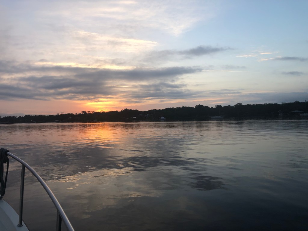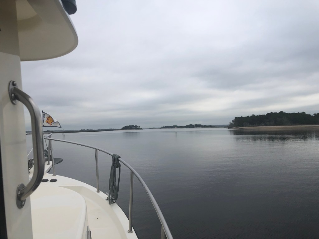 Tuesday: We started early today because it is shallow around our marina and low tide is about 11am. Also with the tide going out, it pulls our boat, increasing our speed without having the engine doing all the work. The waters/oceans are mystical creatures….treat them with respect or else… It took about 1.5 hours for us to arrive at Sister’s Creek which is the turning point North from the St. John’s River. We were both taken aback with the new surroundings: basically the lowlands which are marsh, floodplain etc. Due to the new area we motored slowly getting accustomed to the new environment. After a while, we felt more comfortable and resumed our normal speed.