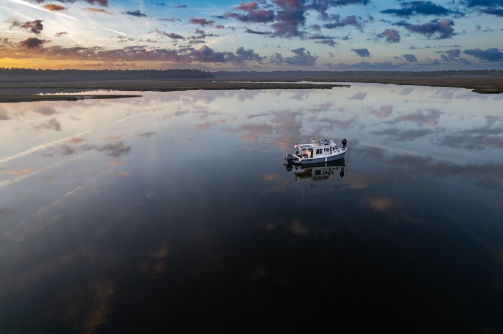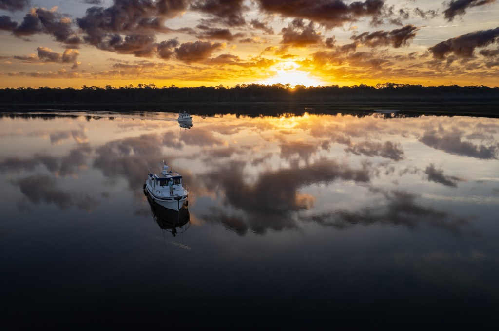 Boundless & Margin left early the next morning headed to Jekyll Island. The pictures Joe took of that morning with his drone describes the beauty we experienced of the sunrise.