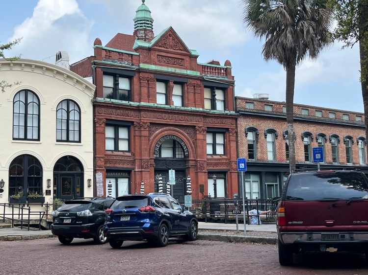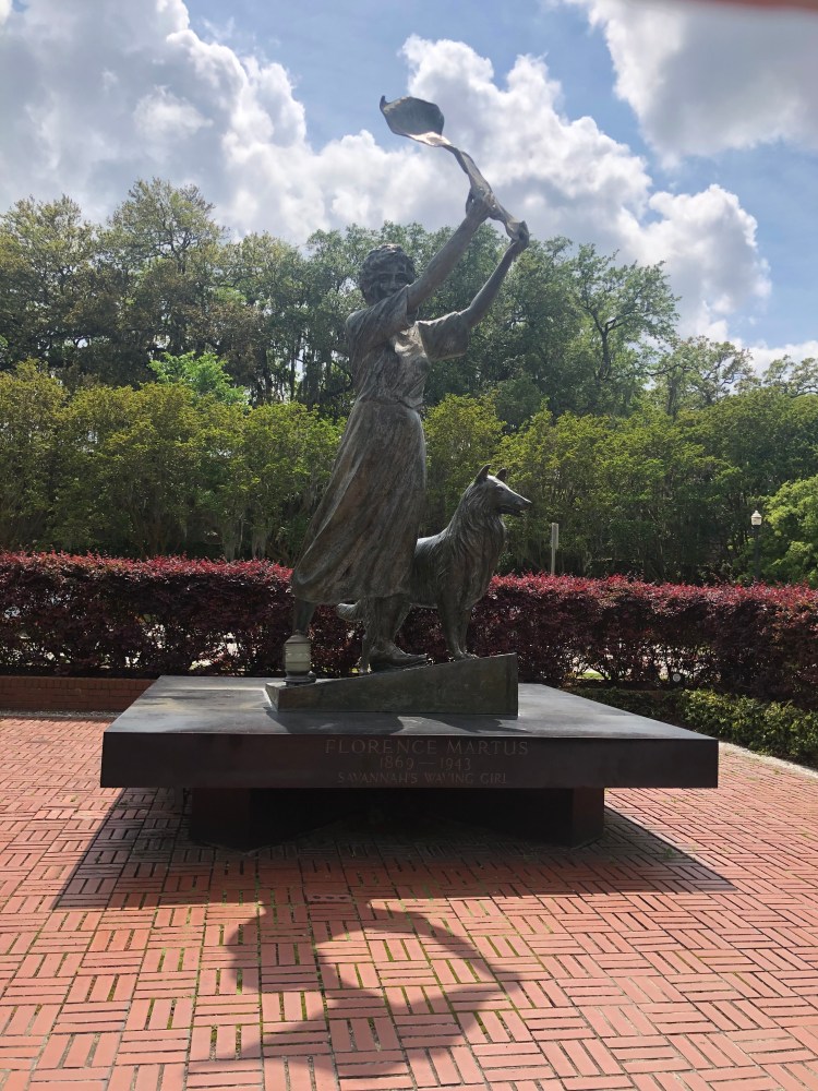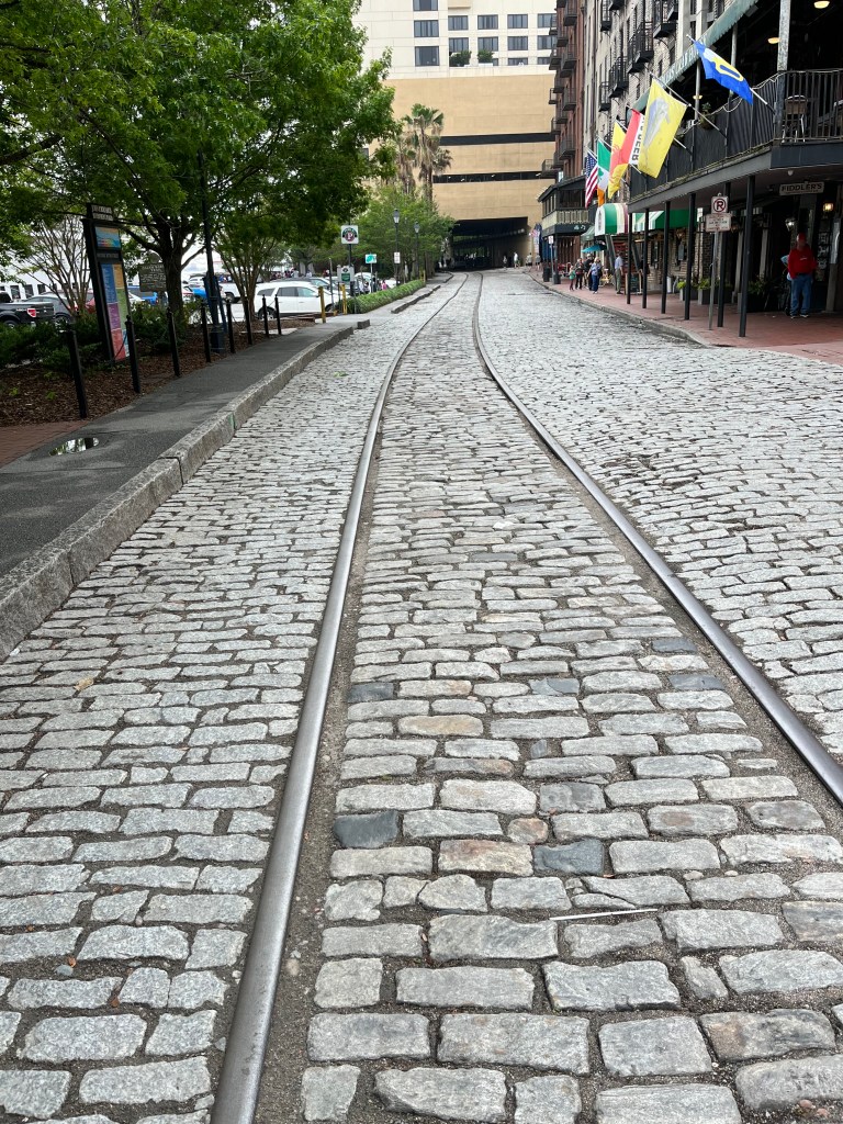 The next day we drove into Savannah to tour the Historic part of the city via the Old Town Trolley Company. It was good to get an overview of the area, but the riverfront/walkway was the best. So much going on in/near the river. Cruiseships, huge merchant ships passing thru downtown, people, stores, ferries and much more. Savannah has many park squares in this area that celebrate different people or events—so much history. Also the old houses have so much character–unlike many housing developments we see today. It was interesting to note that most of these houses are currently lived in by citizens of Savannah and not open to the public.