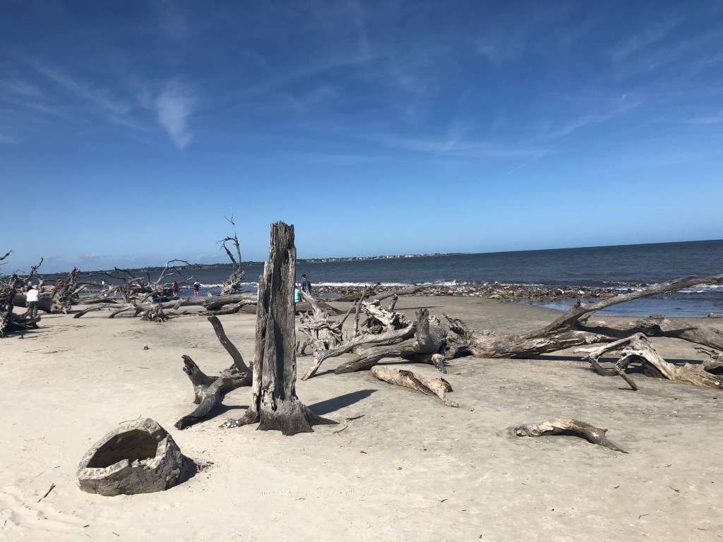 We took advantage of the marina courtesy golf cart to check out the rest of the island–walked on the beach, got my feet wet in the ocean (many memories of the beach in Brazil), Driftwood Beach, and toured the small downtown.
