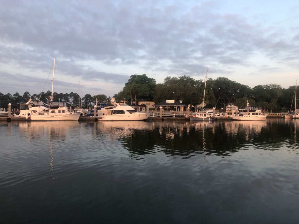 Fernadina Beach–met up with the crew from Boundless, Pony & Blue Moose for dinner at the marina restaurant. Always fun to share stories from the journey and get to know our looper friends better. This is when the no-seeums joined our festivities—NOT!! Dinner became very uncomfortable as we were seated outside on the porch. These no-seeums are pesky pests in these areas…kind of like the biting flies in the UP of Michigan. Eventually the pests won the battle and we made a full retreat to our boats.