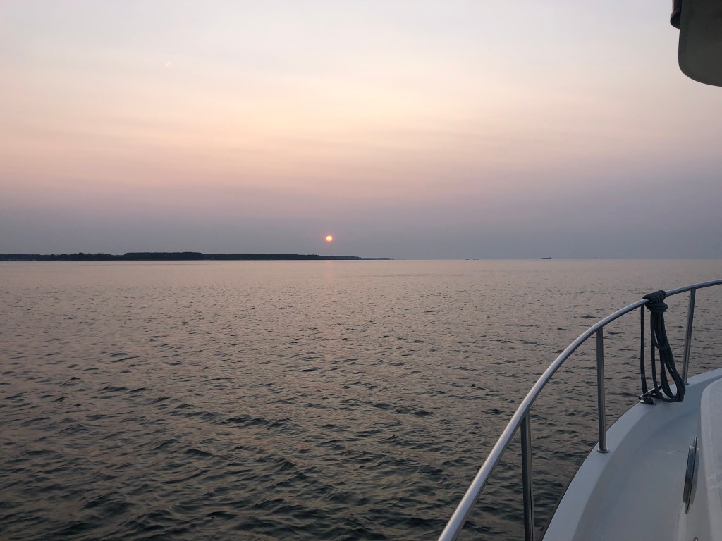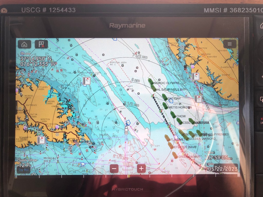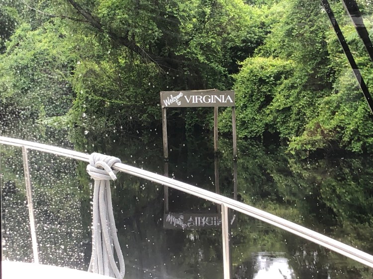 As we finished our journey in the Dismal Swamp Channel we crossed state lines from North Carolina into Virginia. Soon civilization started to appear in the form of the town of Norfolk as well as the waterway was much wider. Our first order of business was to take a hard right south on the ICW for fuel at $3.25 a gallon (a deal for fuel). We topped off at Top Rack Marina (an in/out marina). We decided to dock overnight at the marina but because it’s an in/out marina we were the only boat docked there that night which felt very strange. It was Mother’s Day so Tim treated me to a good steak dinner at the local restaurant that was associated with the marina. I was thankful as there was nothing else within walking distance and I didn’t have to cook =).