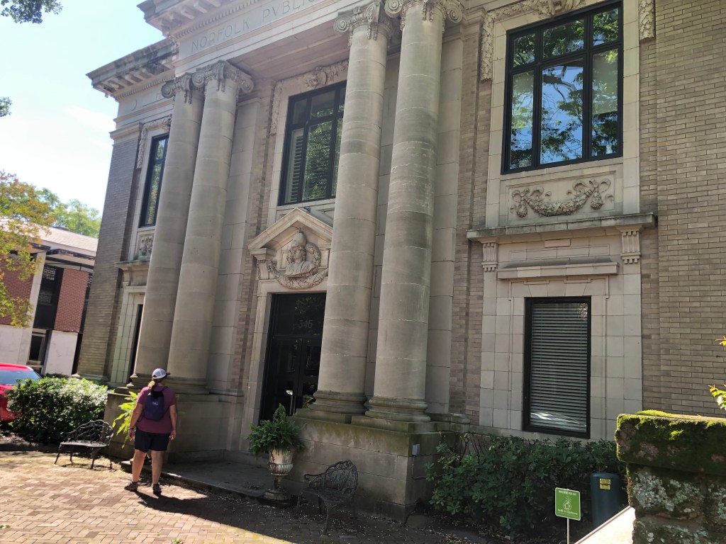 Day 3 in Norfolk-Today we walked north on the riverwalk and toured a couple of streets in the historic district. We tried to visit a fort, but there wasn’t much to see. We continued our walk on Freemason St. for lunch at Freemason Abbey (formally an old historic church). Freemason and Grandby Streets are two of the main streets in this area.