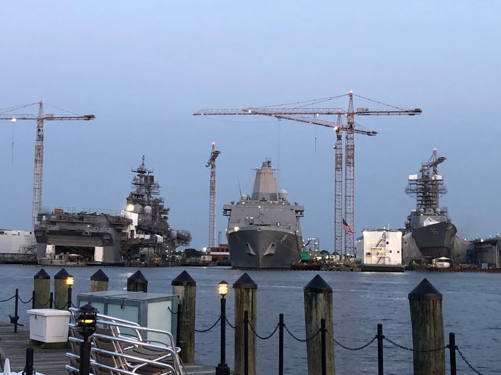 Day 4 in Norfolk we moved our boat to Tidewater Marina (city of Portsmouth) which was just across the river. Getting our laundry done was our objective since Waterside didn’t offer that service. It took 3 loads and long walks to and from the machines, but we got the job done. Dinner that night we tried the local marina restaurant which didn’t meet our expectations. Oh well, hopefully our next outing will be more to our liking.