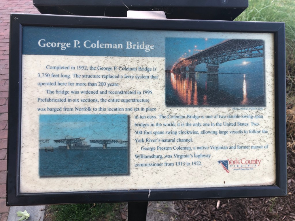 Later that evening, Tim & I walked the entire riverwalk in Yorktown. It made for a very pleasant way to end our stay in this area.