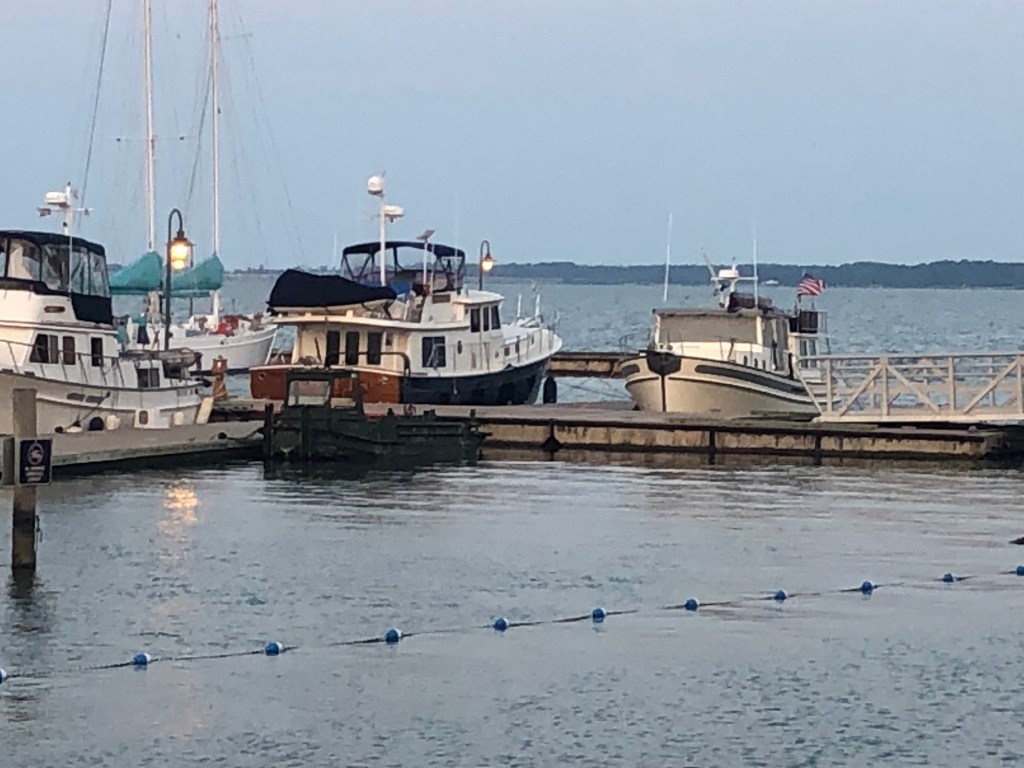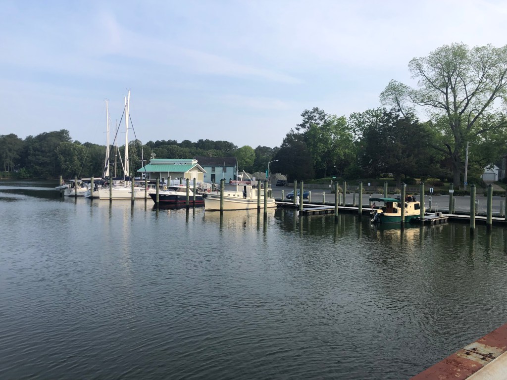 Onacock: 60+miles/7+hours of travel on a sort of good weather day. We left Yorktown at 6am as we had a long day of travel. It was a narrow channel into Onacock, but arrived safely. The boat needed to be washed due to all the salt water deposited on the decks from our journey (looking forward to fresh water motoring). We did a walking tour of the downtown which didn’t take long as most stores were closed up or closing for the day. We had dinner (outside) at the waterfront restaurant. That was a bad idea as the flies were a nuisance, but the food was good.