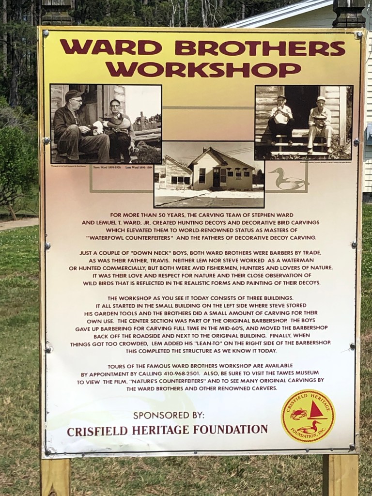 Crisfield — One thing that we have encountered in these small towns, many stores and restaurants are closed completely on Monday and/or Tuesday. Don’t know if it’s because of COVID or the town can’t support these businesses. It was like this in Crisfield. There is a state run marina with 500 available slips and most of the slips are empty. There are several new condo/apt buildings near the marina that look like they were built to encourage growth in this city. Unlike the movie “Field of Dreams” the saying “if you build it, they will come” doesn’t look likes it’s happening in this town.