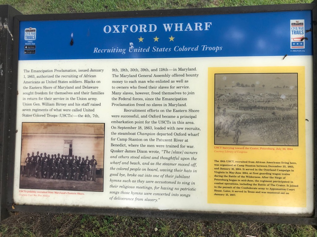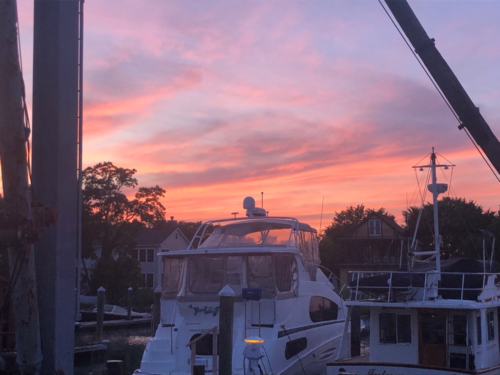 Oxford — A short 4 hour trip to Oxford. We docked our boat in the travel lift basin after weaving our way to the back of the marina. Not much happening around us, but a nice safe/quiet place. We were really thankful to be docked in a protected area as it became very windy into the evening and night with lots of rain.