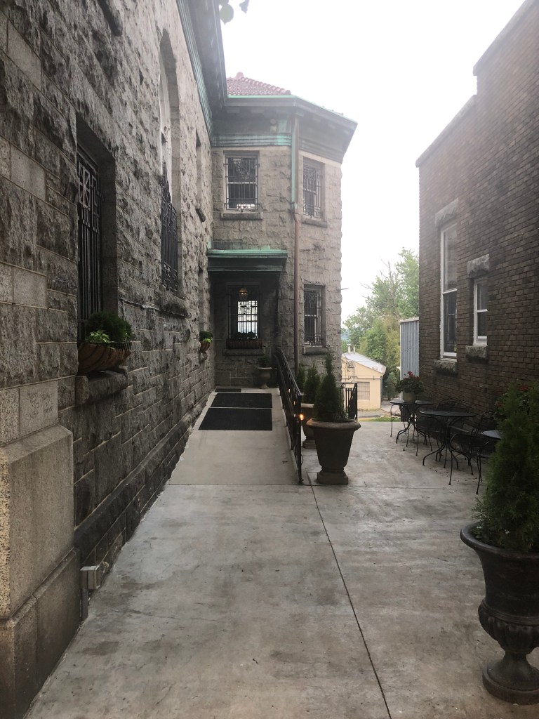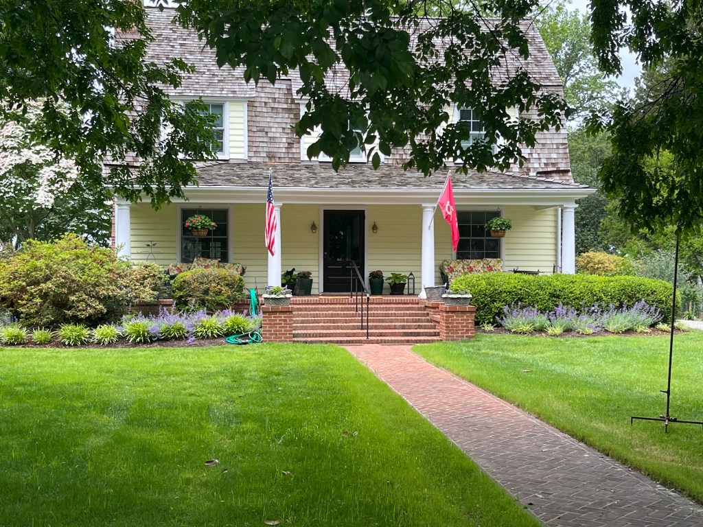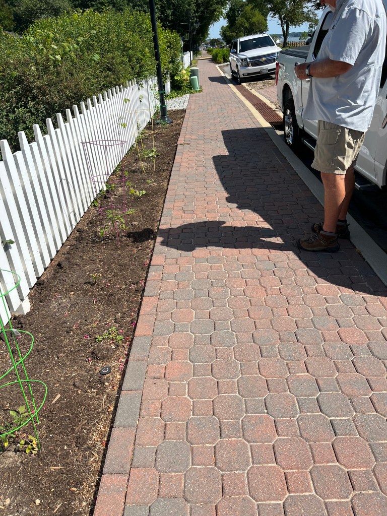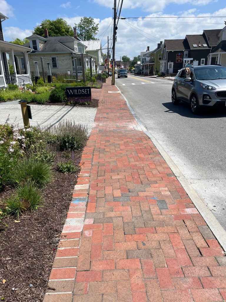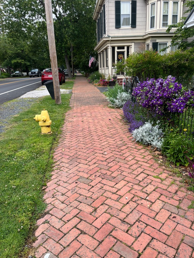 This is a very small town with lots of character. We walked the streets and enjoyed all the beautiful gardens around the houses. My mother-in-law would really appreciate these well manicured gardens. The red bricks from this area of the country were used on most of the sidewalks but in various patterns.