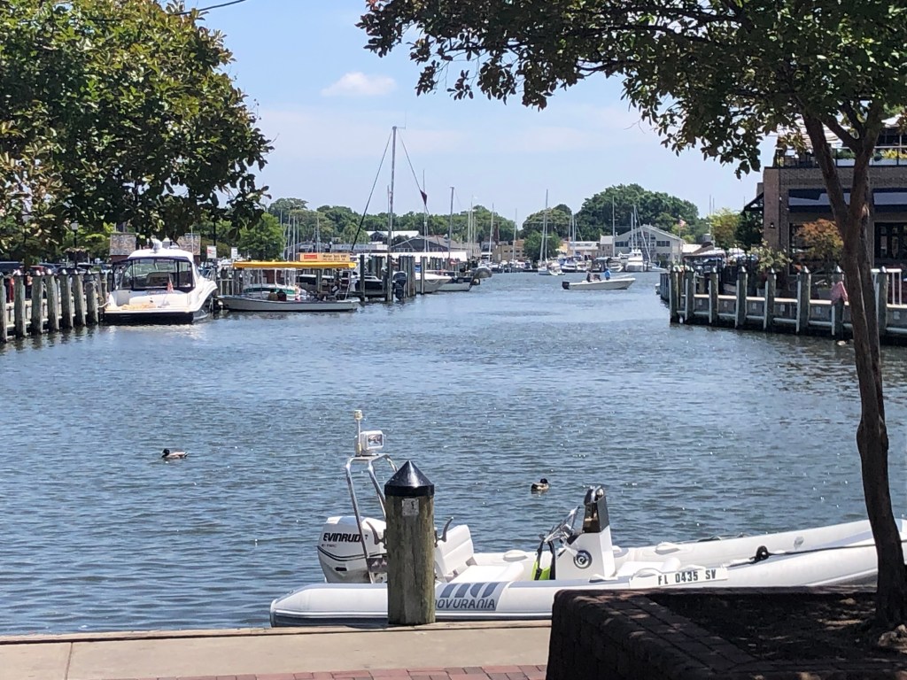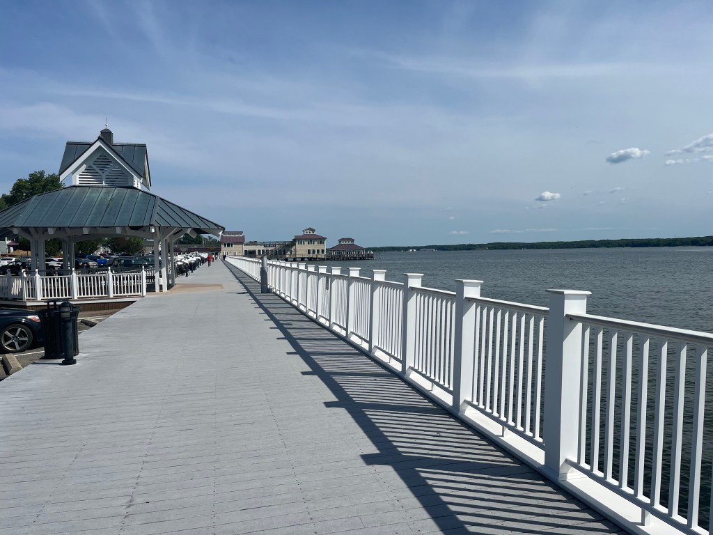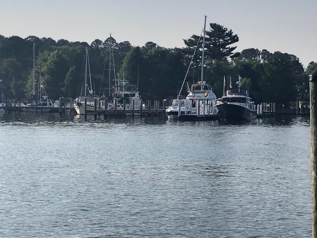 Solomons Island — Moving to the city of Solomons we were greeted with lots of boats and people. What a change! We walked along the boardwalk into the center of the “activity”. Even though it was a holiday weekend, not much was happening and the few restaurant were very high priced. But it was a nice 3+ mile walk in any case. Our first night in Solomons we could hear country singer Dustin Lynch concert from the nearby concert venue.