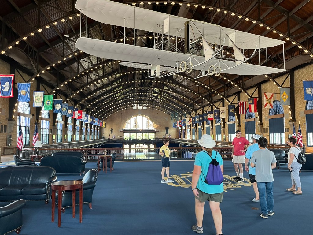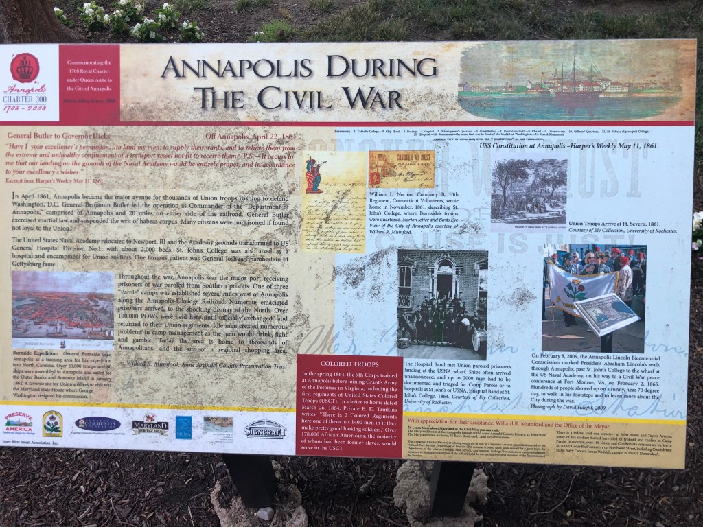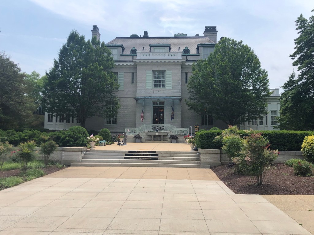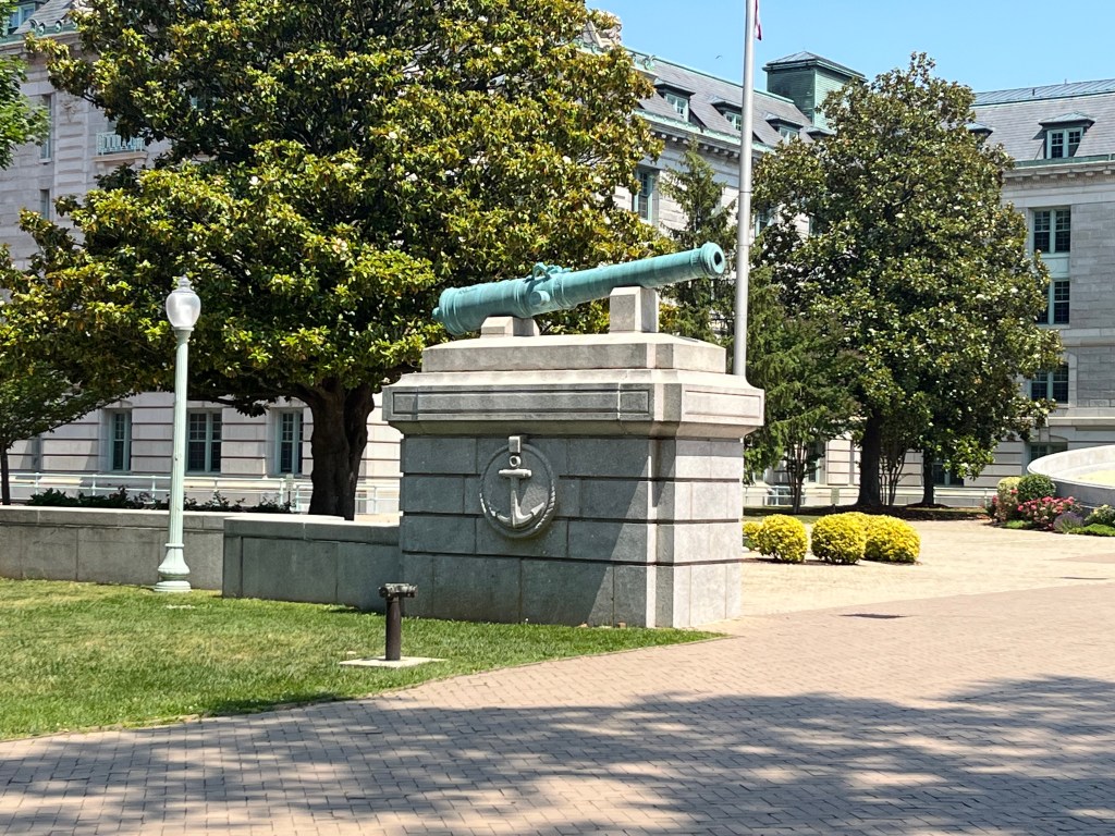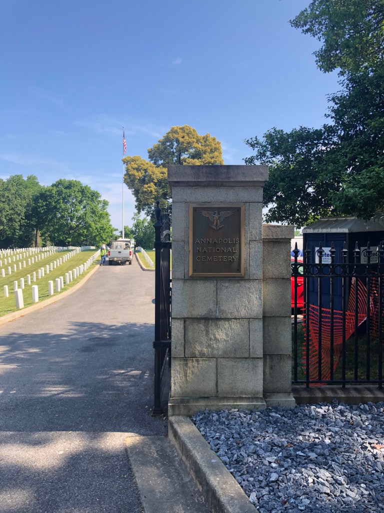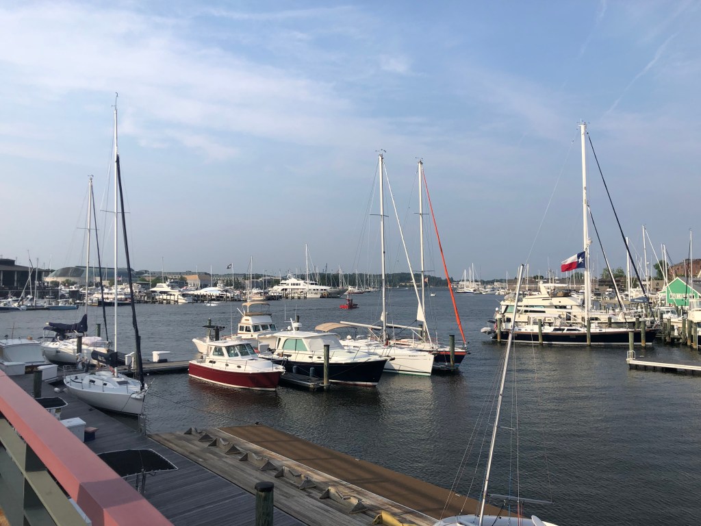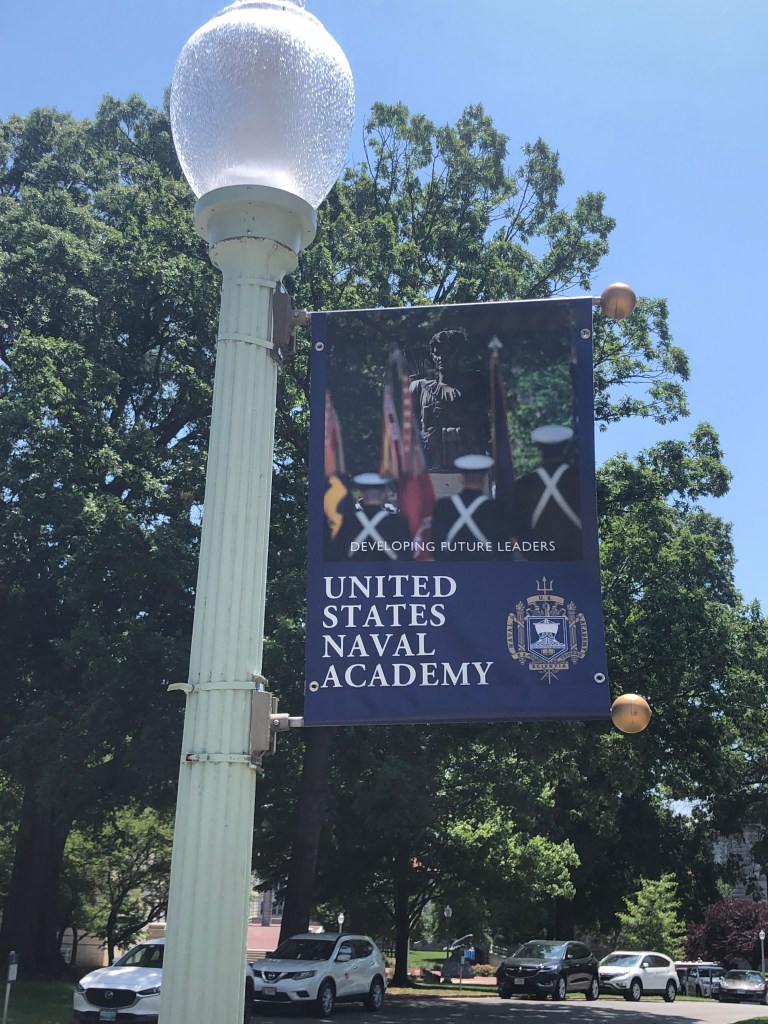 Annapolis — Off to the big city of Annapolis, better known as the sailing capital of the US. They’re a ton of boats around here and lots of tourists. We are docked close to the old downtown and also the US Naval Academy. Our first agenda was the hour long tour bus of the historic area—so much history and lots of red bricks on the road/sidewalks and the houses. We then participated in a walking tour of the Naval Academy (our guide was a very fast walker). We only had to show our license and walk thru a medal detector to gain access to grounds of the academy. The Midshipmen are on summer break so not many people in uniform on the campus. It was interesting to learn about the lives of the midshipmen while on campus and all that it involves. I was impressed how leadership qualities are taught and caught in all areas of these young people. These are the future officer/leaders of the Navy and Marines.