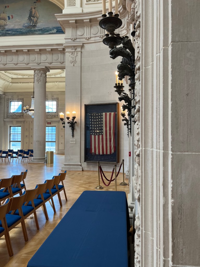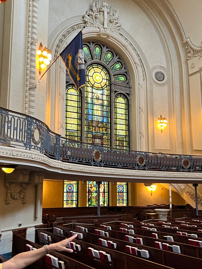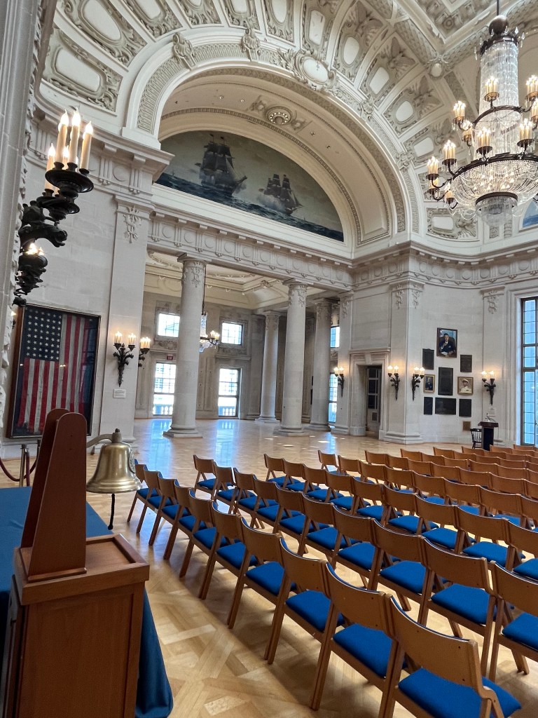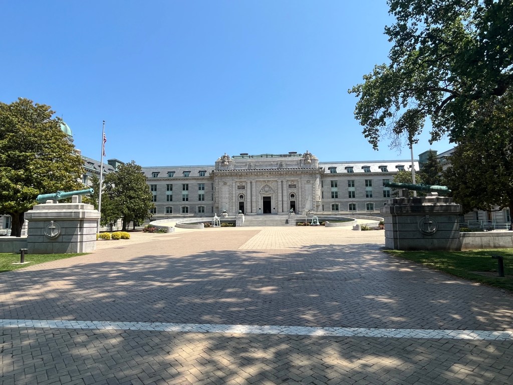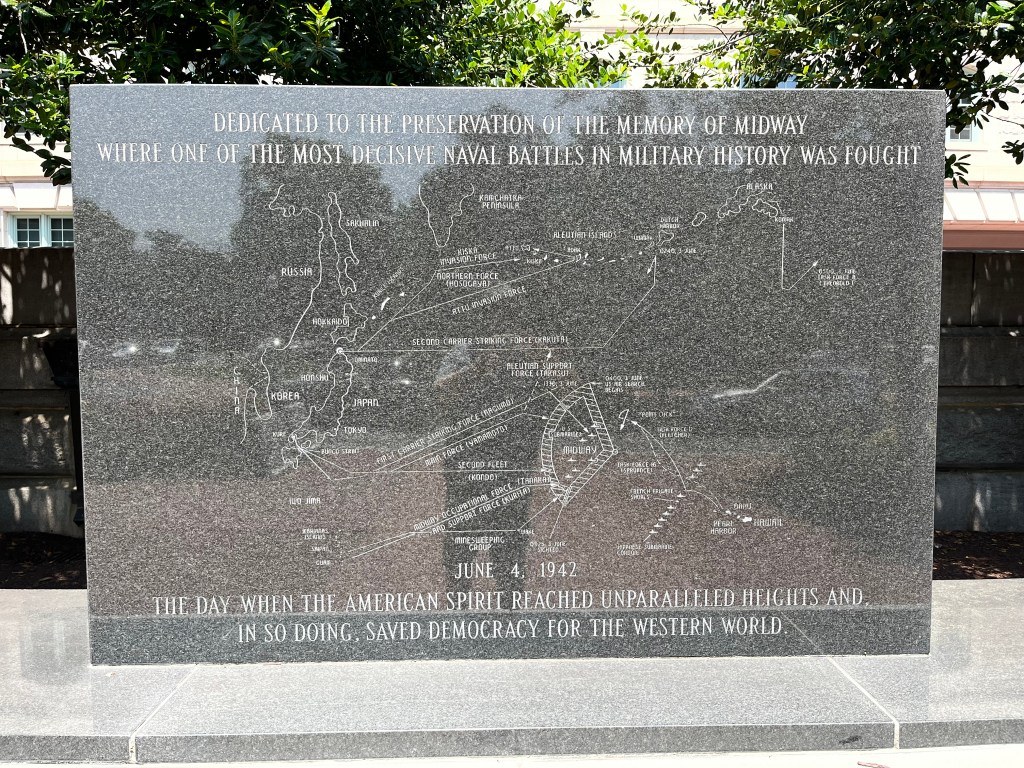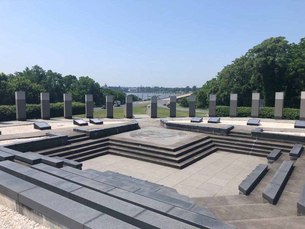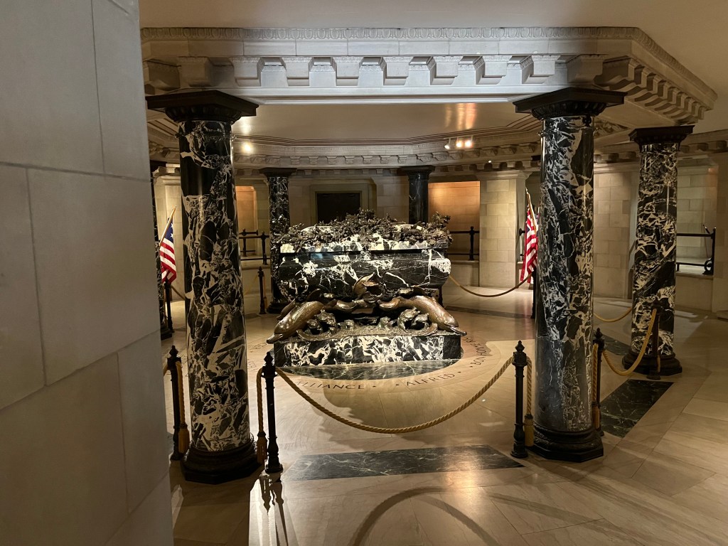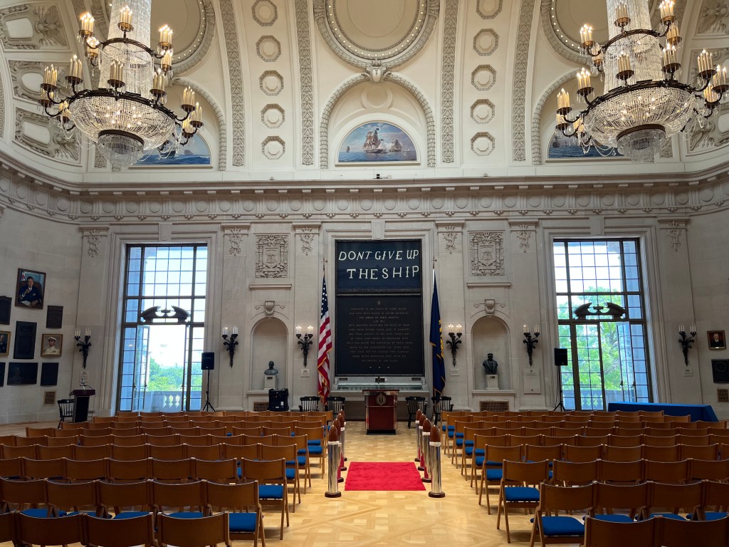 Annapolis — Off to the big city of Annapolis, better known as the sailing capital of the US. They’re a ton of boats around here and lots of tourists. We are docked close to the old downtown and also the US Naval Academy. Our first agenda was the hour long tour bus of the historic area—so much history and lots of red bricks on the road/sidewalks and the houses. We then participated in a walking tour of the Naval Academy (our guide was a very fast walker). We only had to show our license and walk thru a medal detector to gain access to grounds of the academy. The Midshipmen are on summer break so not many people in uniform on the campus. It was interesting to learn about the lives of the midshipmen while on campus and all that it involves. I was impressed how leadership qualities are taught and caught in all areas of these young people. These are the future officer/leaders of the Navy and Marines.