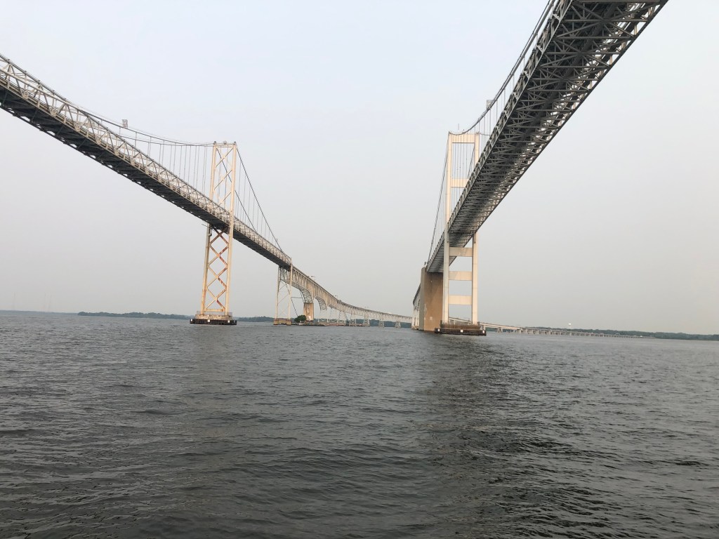 Apparently Baltimore harbor is a very busy commercial harbor. Many ship loading and unloading in various parts of the harbor. As we were leaving Annapolis, there were about 5+ ships anchored in the bay, awaiting their turn to enter Baltimore harbor.