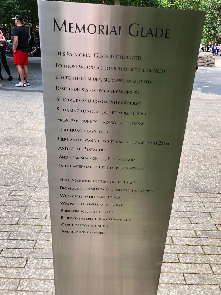 911 memorial, battery park, Central Park (bike ride), Washington park/monument, Time’s Square, Dinner in Chinatown, saw Radio Music Hall, saw Jimmy Fallon/ Tonight Show marque, Naked Cowboy, various acts in Time’s Square and more.