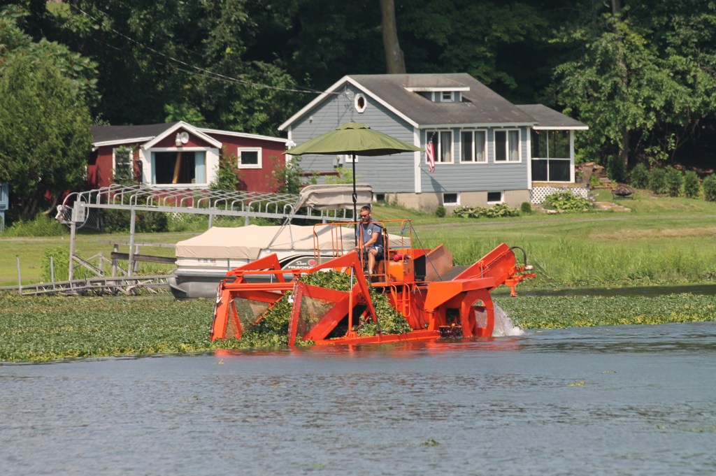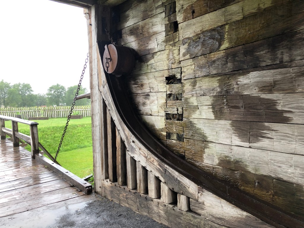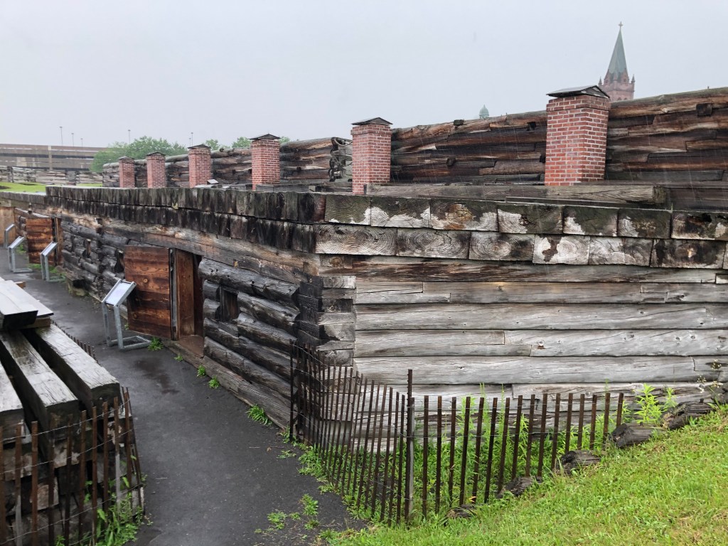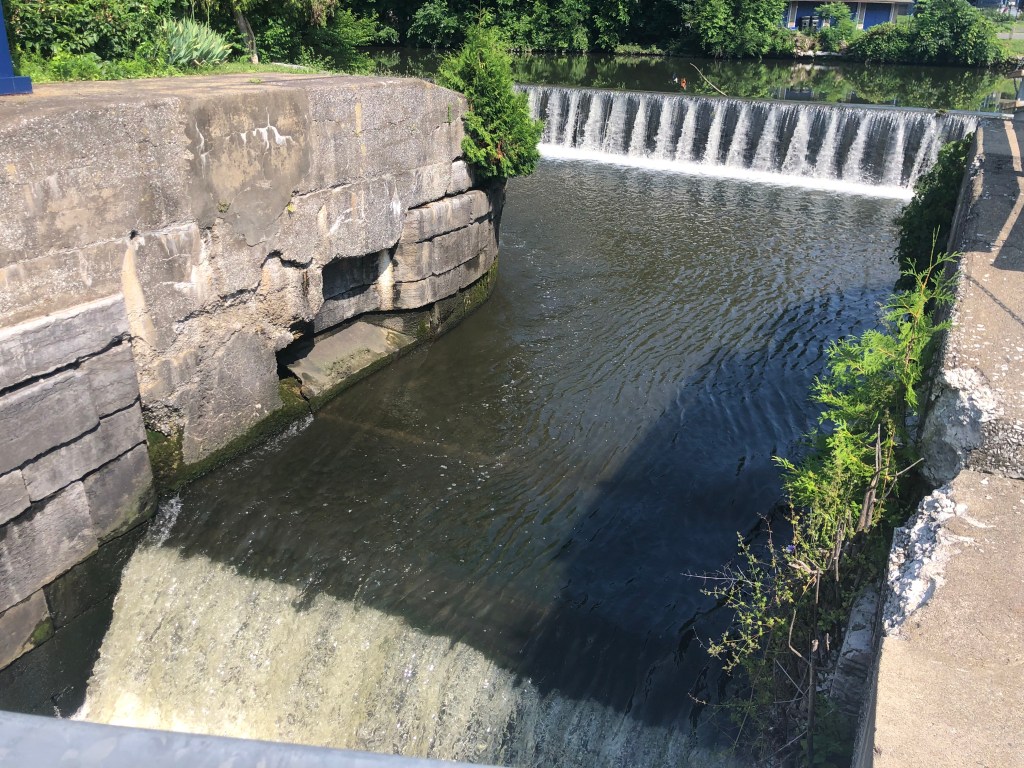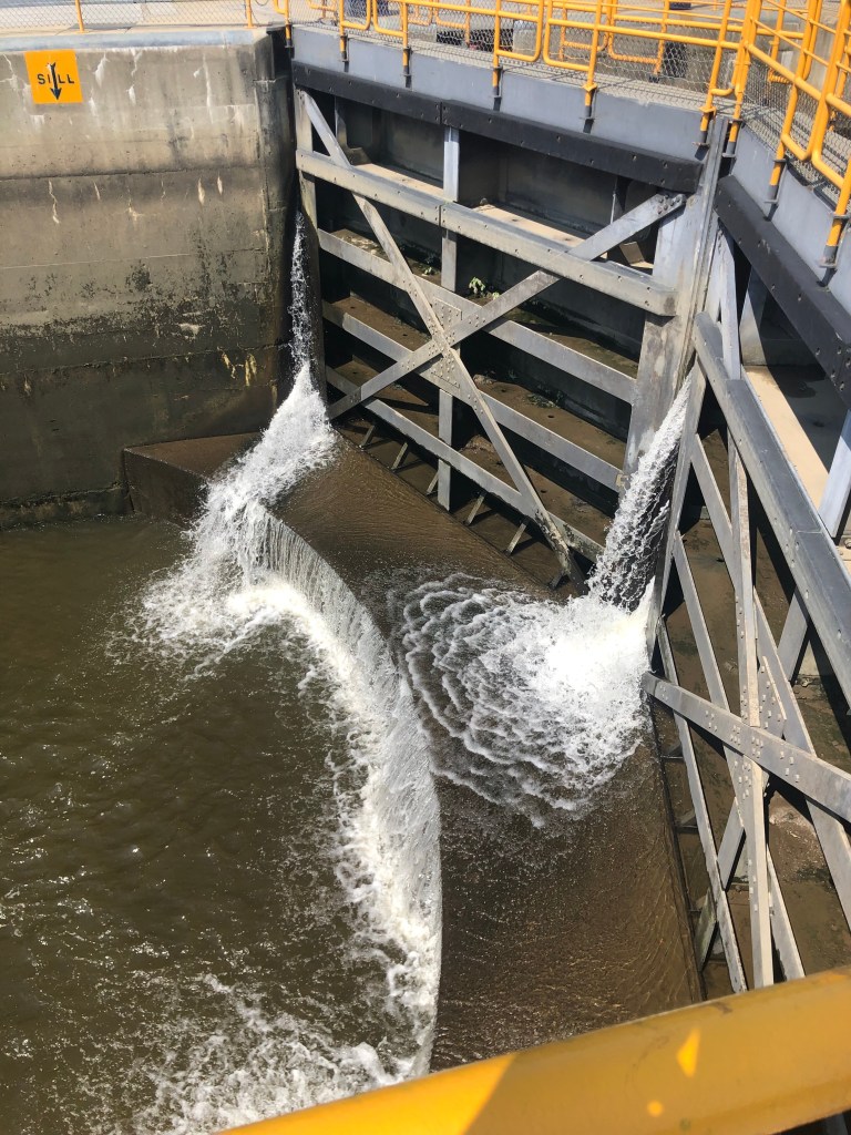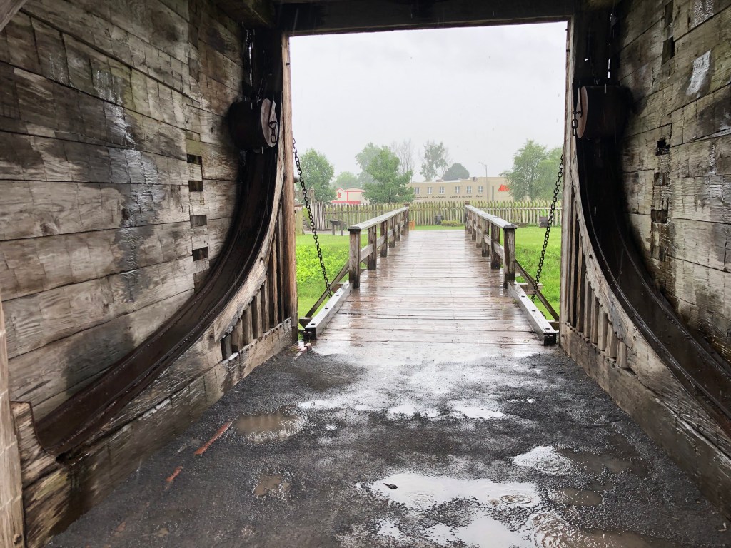 Ilion: Locks 16-18. Left at 7am to travel in the cool of the morning. Uneventful day of travel. The one unusual lock was lock 18 just before the city of Little Falls. This lock didn’t have doors that opened/closed on hinges. But rather this unique lock lowered and raised guillotine type doors. It is unsettling to drive the boat under the doors to enter the chambers of the lock. We decided not to stay in Little Falls as we had visited there during our boat shopping days in and around Albany area. Anyway, we arrived in Ilion Marina where “Pony” and “Pickets Pub” were docked. Not much here, but we did find an Aldi’s to supplement our food on the boat. Enjoyed drinks (Diet Coke and Ice Tea) at the local McDonald’s. Another trip to Ace Hardware–always something to be fixed on a boat. A storm was predicted in the afternoon, but all we got was rain. Pump-out scheduled for first thing in the morning.