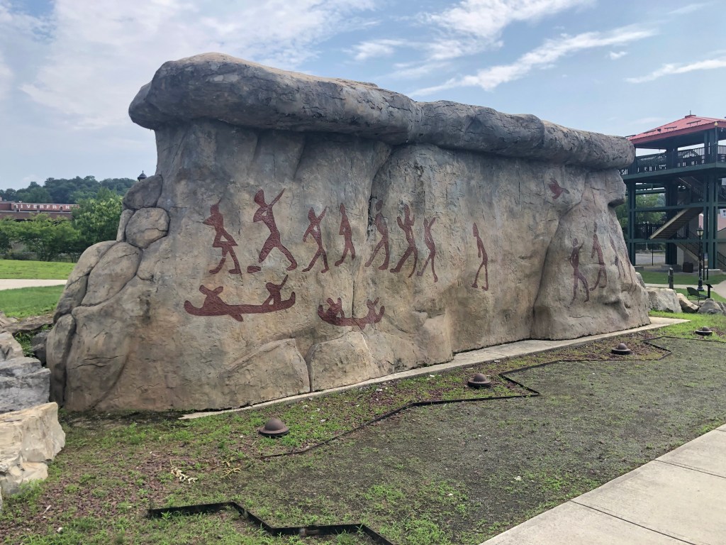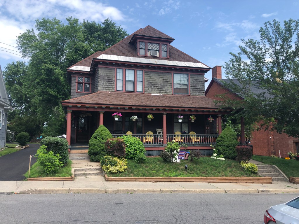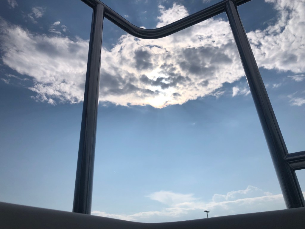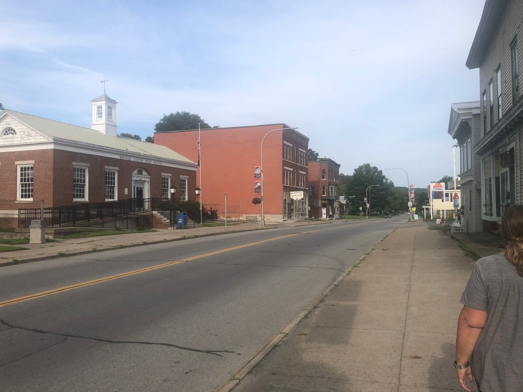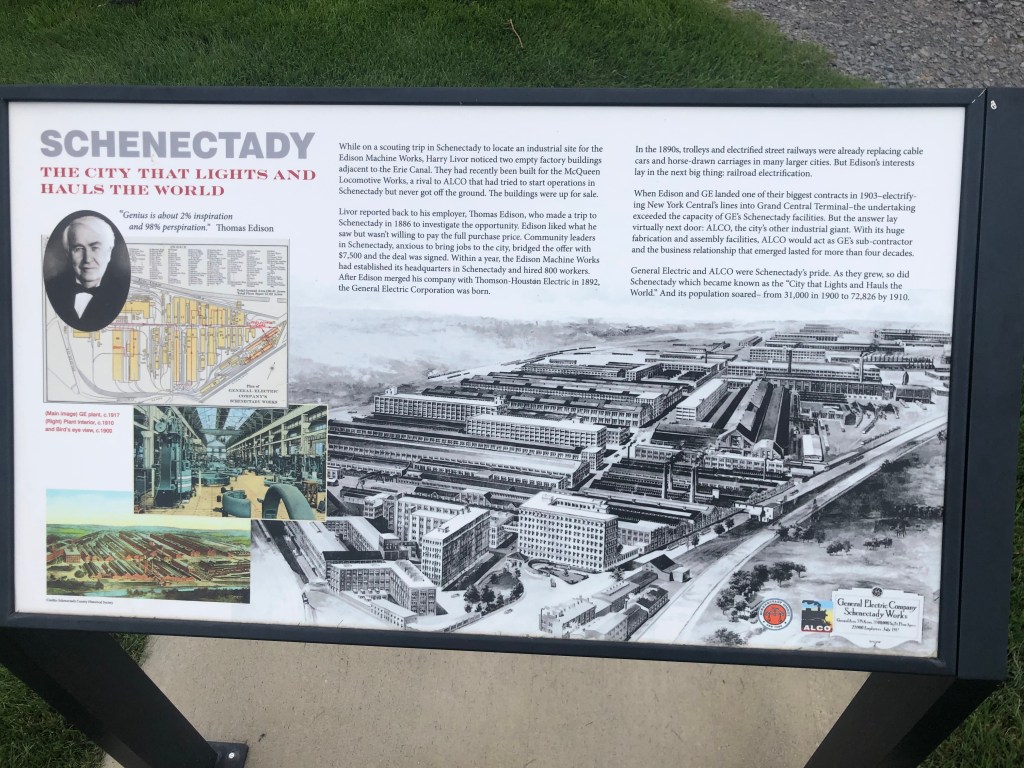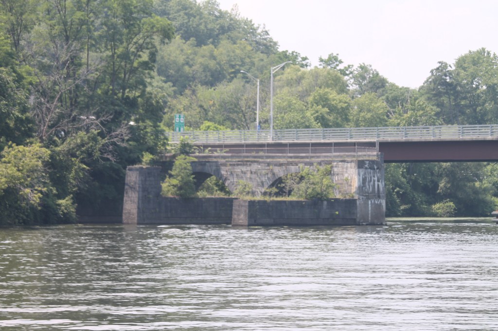Waterford–flight of 5 locks: 13+ looper boats are headed west on the Erie Canal. We decided to wait for the second group vs rushing to get to Lock 2 at 8am with the 7 others boats. Flight of 5 locks + 1 lock with 5 other boats that very hot day. We cruised about 20nm and docked for the night at Donovan’s Mohawk Harbor in Schenectady (same owners as Donovan’s Shady Harbor). The harbor is shaped like a fish and is surrounded by apartment buildings on one side and a casino on the other. Tim & I enjoyed a walk around the area and even walked part of the Erie Canal trail thru this town. We had supper with looper friends (Oyster). My dinner was a gourmet grilled cheese sandwich with a side of greens…so yummy as I’ve been craving a cheese sandwich for days now. Not part of the diet, but so worth every bite. Of course the greens helped my guilty conscience. (sort of).