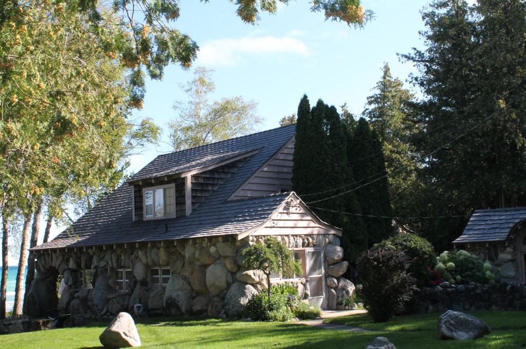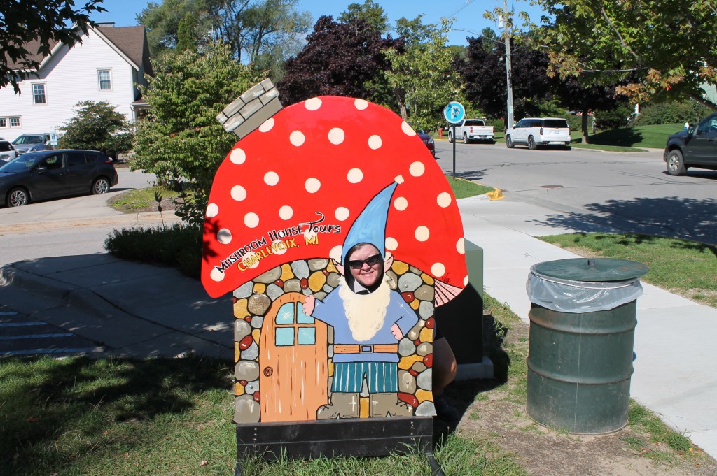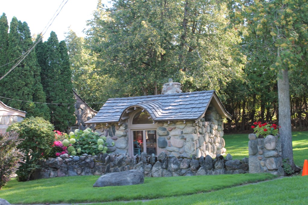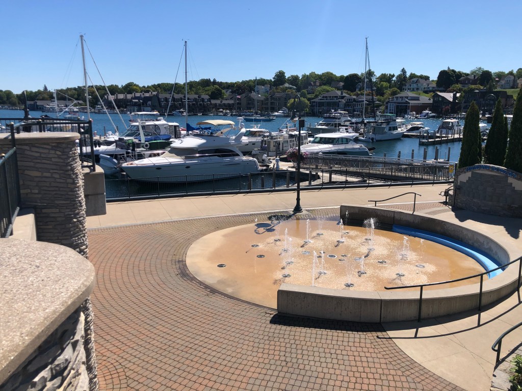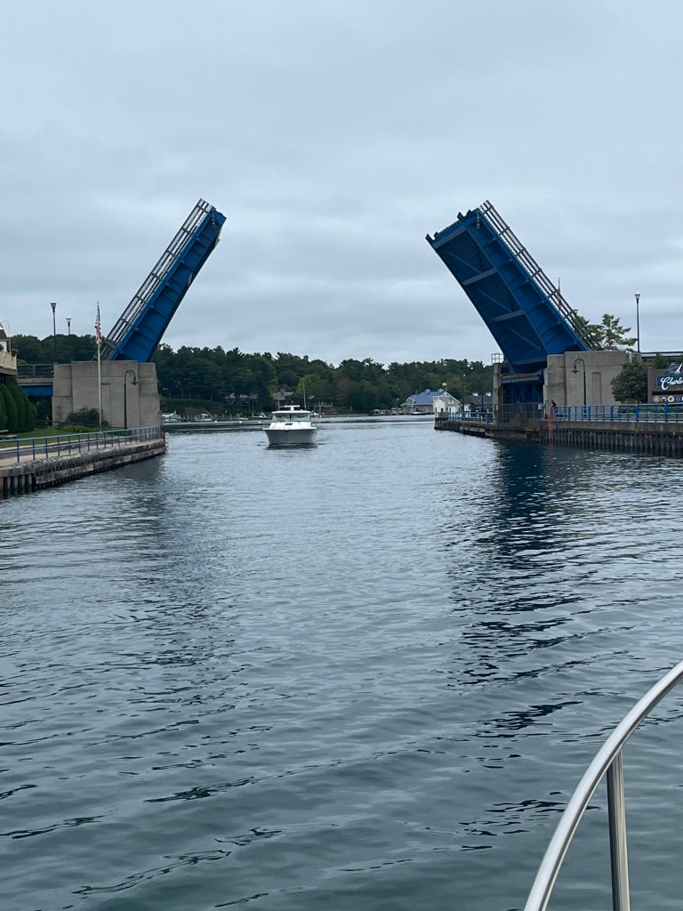Charlevoix: Next stop Charlevoix. The wind wasn’t in our favor today which made part of the journey uncomfortable, but eventually we were able to aim right to the channel at Charlevoix. We waited for the drawbridge to open, then into Round Lake and the Municipal Marina to dock for the night. It was kind of special to meet up with Jeff & Lisa, on Boomerang, who we hadn’t seen since Southport, SC. Enjoyed a walk by the mushroom houses and dinner with them that evening. I miss seeing the loopers that we traveled with who are mostly ahead of us on the loop.
