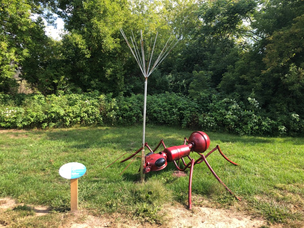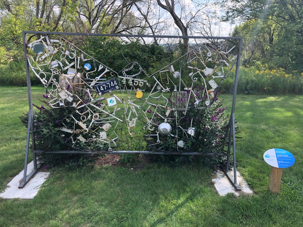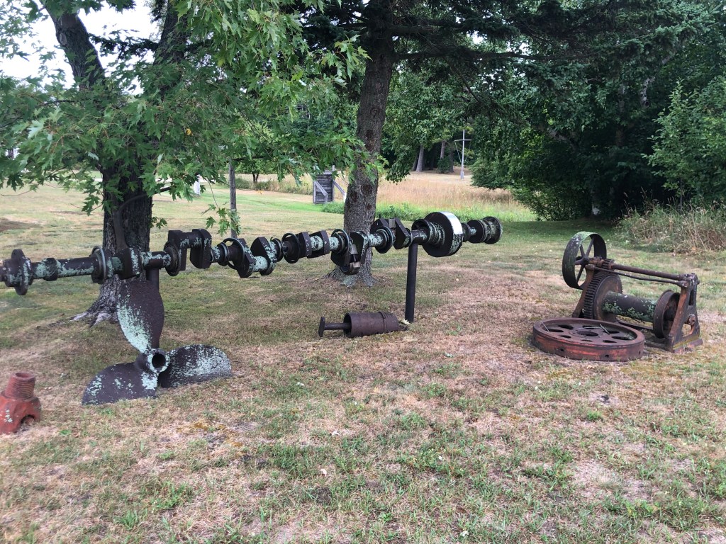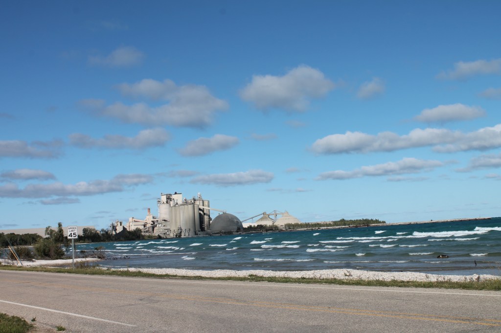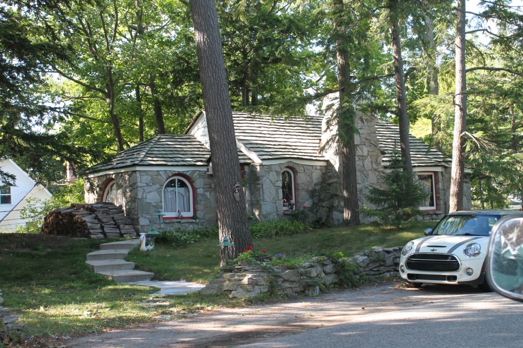 Charlevoix: Next stop Charlevoix. The wind wasn’t in our favor today which made part of the journey uncomfortable, but eventually we were able to aim right to the channel at Charlevoix. We waited for the drawbridge to open, then into Round Lake and the Municipal Marina to dock for the night. It was kind of special to meet up with Jeff & Lisa, on Boomerang, who we hadn’t seen since Southport, SC. Enjoyed a walk by the mushroom houses and dinner with them that evening. I miss seeing the loopers that we traveled with who are mostly ahead of us on the loop.