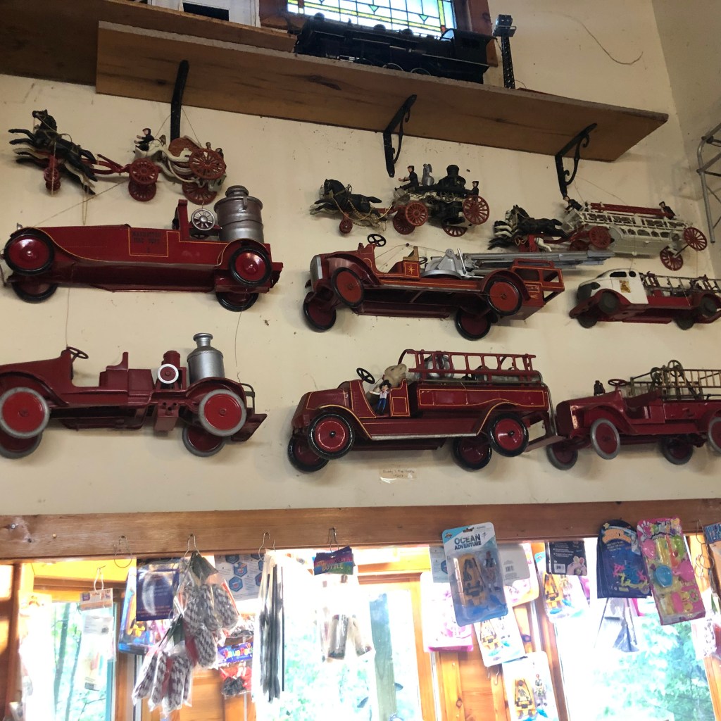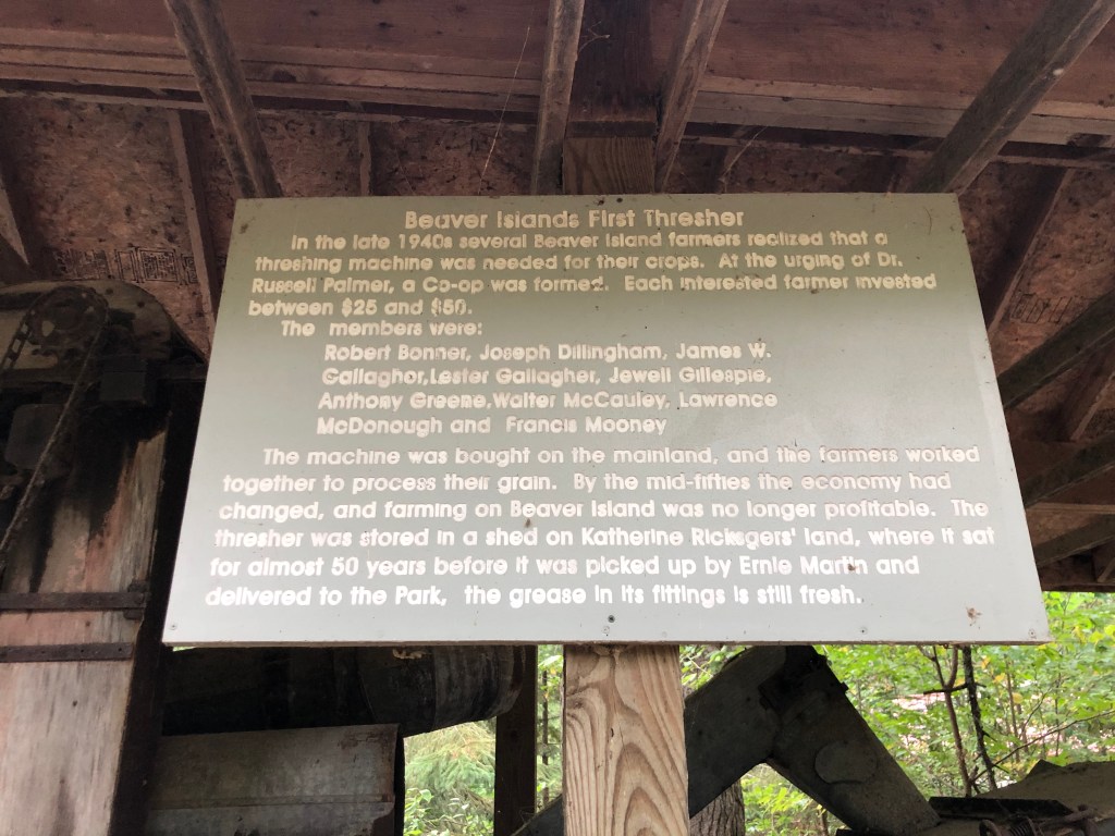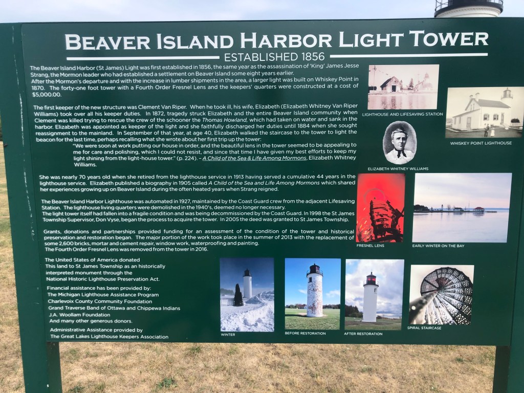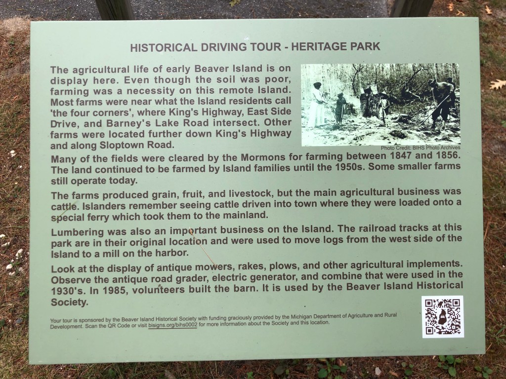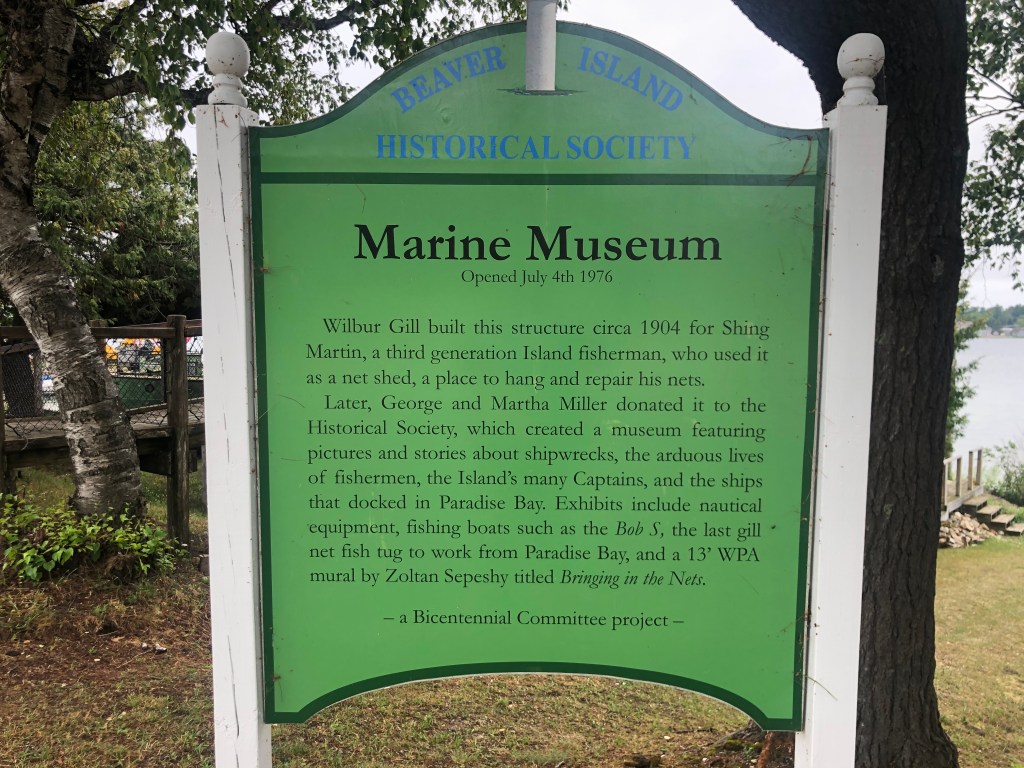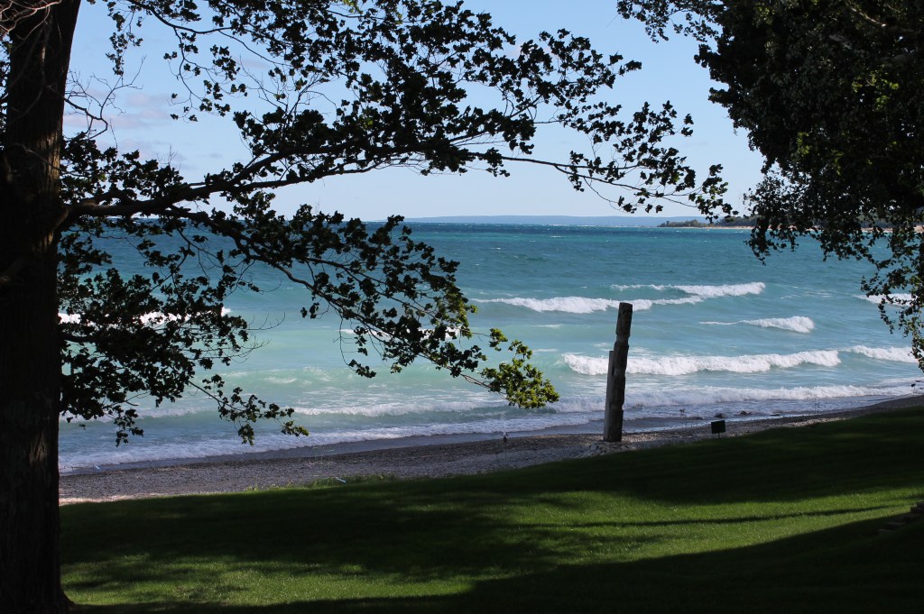 Beaver Island: I wasn’t too keen going to Beaver Island as it seemed out-of-the-way, but I’m glad we did. But first the condition of the cruise, we went west from St. Ignace and then south thru Grey’s Reef and then west again to the island. Not fun!!! Lots of riding the rollers at an angle to avoid rolling. Seemed like it took forever, but we did arrive. Once we entered the “lagoon” or lake we cruised around the outer perimeter to the north side where we docked. This is a very unique island as the way-of-life is sort of modern, but yet very quaint/slow. There is a population that stays on the island all year and is supplied by ferry in the summer and plane in the winter. And yes, the ferry can bring your car to the island. The island has a downtown(ish) with a few restaurants, bars, grocery store, post office and a few other necessary businesses. We enjoyed the lack of business on the island and few tourists. We rode our bikes to the Circle M Bar & Restaurant for dinner one night (the building was once a rectory for a church). The church building was moved 1 mile into town so the townspeople could attend more easily. We also walked out to the lighthouse and on the way visited the maritime museum and a toy shop (almost didn’t find this shop as it was hidden behind bushes and trees). Our second day there a storm blew in with lots of rain, but we did manage to get out when the sun came out. This island is one place I would like to visit again when the weather is nicer.